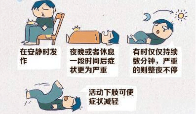不宁腿综合征也叫不安腿综合征,是一种神经系统感觉运动性疾病,以强烈渴求肢体活动为特征,通常伴有双下肢感觉异常,偶尔累及上肢感觉异常多种多样,常见于酸麻感蚁走感针刺感,甚至难以描述的不适感此种不适感在肢体活动后减轻休息时加重,白天减轻夜间加重不安腿综合征分为原发性和继发;不宁腿综合征是一种神经系统功能障碍的疾病以下是关于不宁腿综合征的详细解释症状表现患者会感到下肢有无法形容的不适感,这种不适感既不痛也不痒,但非常痛苦,让人辗转反侧,难以忍受由于这种不适感,患者会不由自主地出现无法控制的动作,如踢腿搓腿等,以试图缓解不适症状在白天相对不。