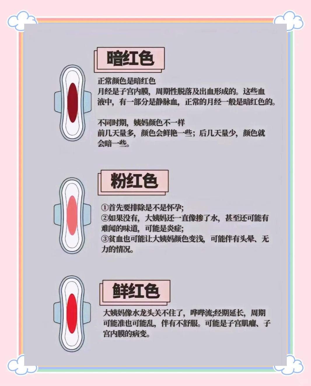 姨妈呈粉色可能为着床出血也就是怀孕早期的一个症状,量会比正常月经少很多,也可能呈现点滴状如果近期没有发生过危险性性行为,可以观察一段时间,如果长期出现粉色姨妈,建议去医院检查,可能是血虚 2大红色 大红色的姨妈在月经周期内是正常的说明子宫内膜脱落速度较快,一般出现在月经的第2~3天,但如果整个月经;1 颜色特征正常月经血颜色通常为暗红色月经初期来潮第12天,经血可能呈现鲜红色,这是由于子宫内膜刚开始脱落,血液排出较快,氧化程度较低随着月经进程推进第35天,经血颜色逐渐加深为暗红色,这是因血液在阴道内停留时间延长,血红蛋白与氧气充分反应的结果若经血始终为鲜红色或颜色;正常月经血是一种暗红色液体,其特点涵盖颜色质地出血量周期及伴随症状等方面,具体表现因人而异颜色月经血通常为暗红色,这是血液中铁元素被氧化后的结果月经初期和末期,血液颜色可能较暗淡,接近棕褐色中期出血量增加时,颜色可能更鲜艳,但整体仍以暗红为主若血液呈鲜红色且持续,或;正常情况下,每月的经血量应该是在20ml60ml左右经量多于80ml为月经过多,少于5ml为经量过少5ml大概就是一个矿泉水瓶盖的量,80ml大约是小半杯一次性水杯的量用卫生巾来衡量,假定10片装的卫生巾,正常情况下是一天换45次,每张卫生巾都不完全浸透,每个月经期不超过3包,基本上都是正常的月经量 如果超过。