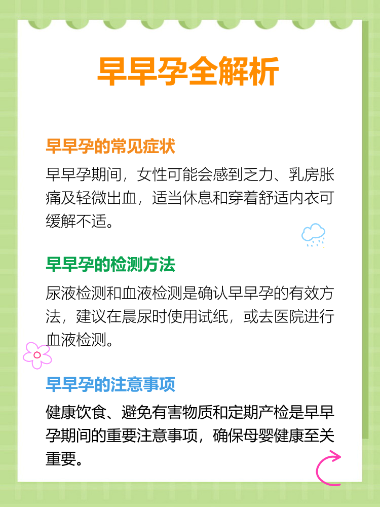 妇女怀孕后,身体内发生一系列生理变化,早孕的早期症状有以下几个方面一是停经 停经是怀孕早期的最早最重要的“信号”凡是月经周期一向正常的有性生活史育龄妇女,如果月经过期超过10天以上,就应考虑到有怀孕的可能,如停经超过2周以上就需要到医院检查原因二是早孕反应 多数妇女怀孕56周以后。
