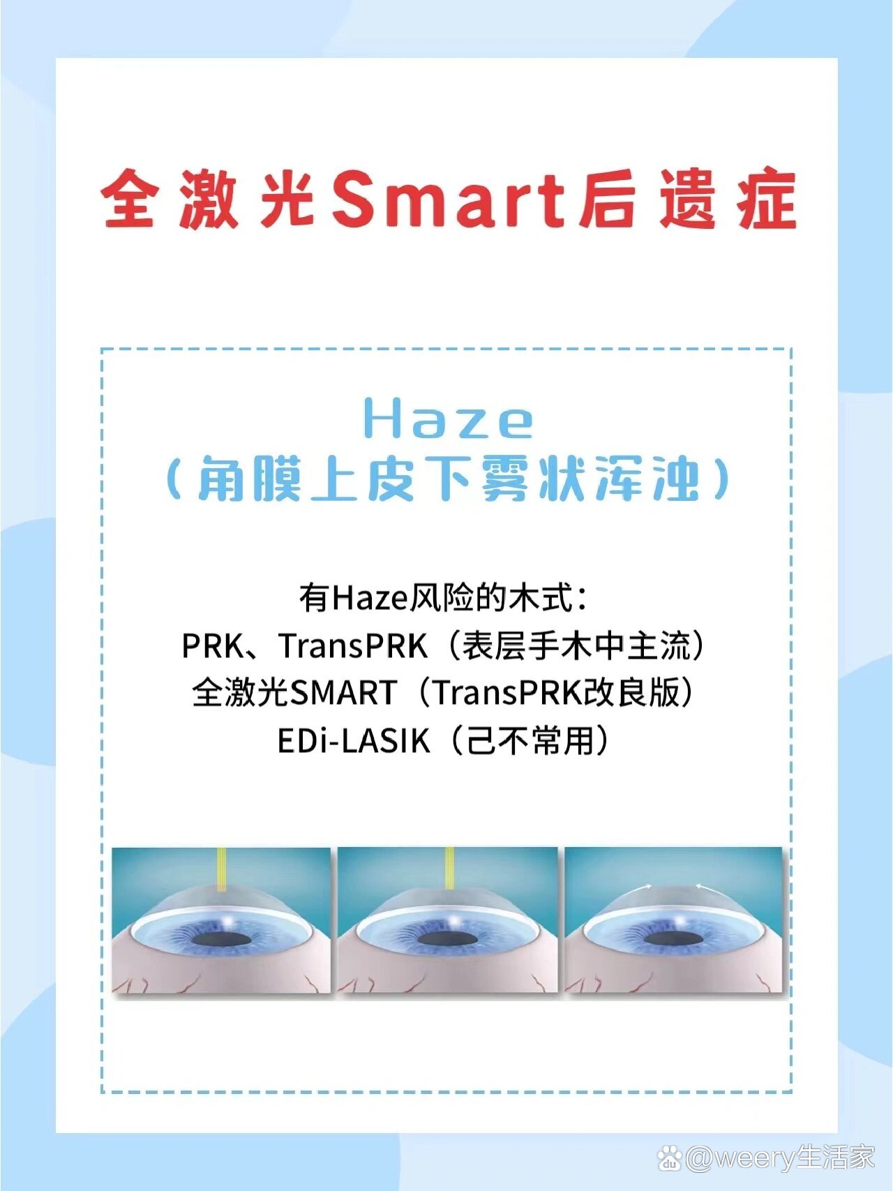11、近视激光手术后注意事项1手术后遵医嘱点眼药,注意保持无菌2按时复查恢复快的手术方式一般是术后一天一周一个月三个月半年一年恢复慢的手术方式根据您的恢复情况遵医嘱复查3术后一周内不吃辛辣刺激的及易过敏的食物,避免过度用眼,一个月内尽量少用电脑,如因工作。