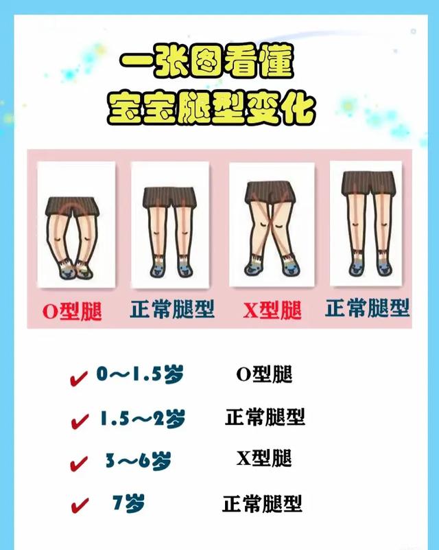 大概一岁半到两岁之间,孩子的腿会从O型开始拉直,因为慢慢已经开始承重。