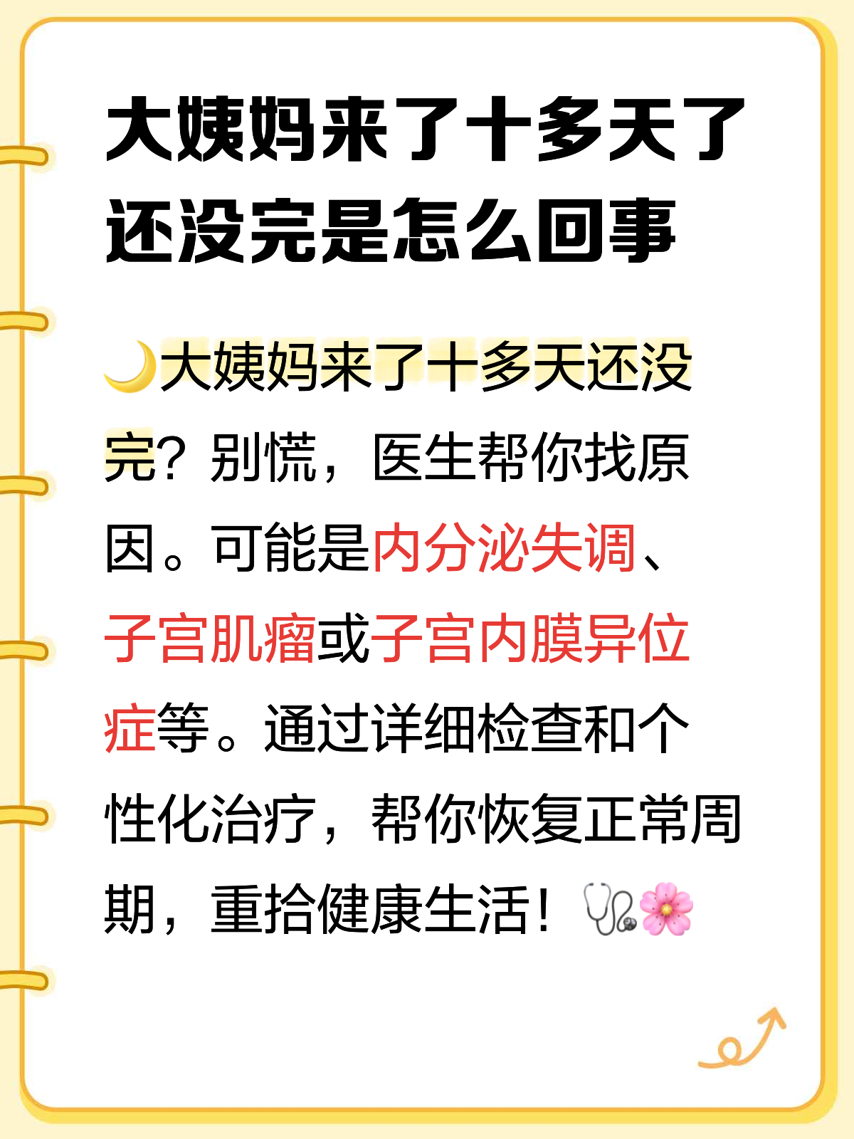 大姨妈提前十天可能由以下原因引起怀孕大姨妈提前十天有可能是怀孕引起的这时,需要通过抽血检查血HCG值来排除怀孕的可能性月经失调如果排除了怀孕,且这种情况只是偶尔发生一次,那么考虑是月经失调此时,应避免过度紧张焦虑,保持情绪稳定,不给自己太大压力,这些做法对调节月经有一定的帮助作。