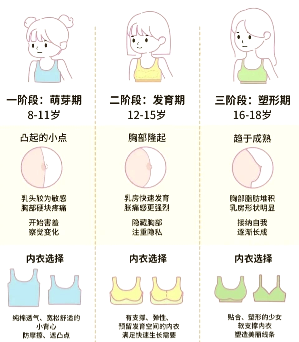 回答指导意见 在女性发育进程中,女孩子到了9~13岁期间,下丘脑分泌一种促性腺素释放激素,促进脑垂体产生促性腺激素,促进卵巢发育,使之分泌雌激素,于是乳房逐渐隆起,摸起来内部有一个质地较硬的块状物,呈豌豆或蚕豆大小的圆丘形硬结,伴有轻微胀痛或隐痛感,表明乳房内的腺体开始发育但这种乳房痛,可随。