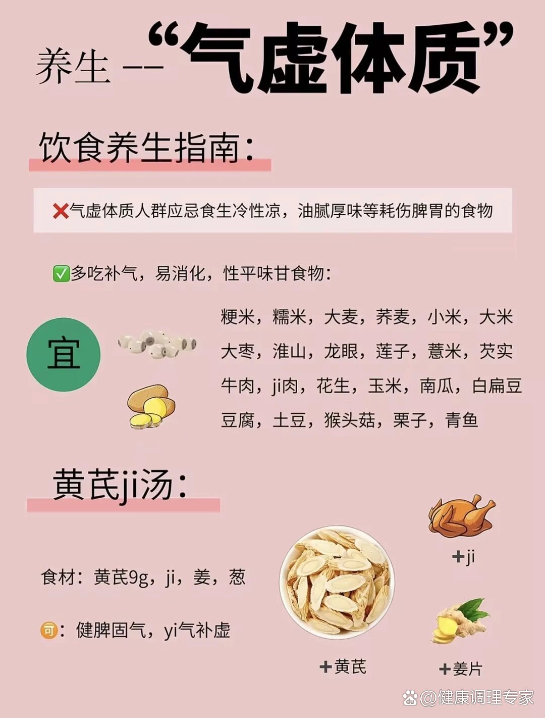 12、气虚的调理需根据不同脏腑的气虚情况针对性进行,具体方法如下1 肺气虚调理肺气虚主要表现为咳嗽无力气短喘促声低懒言自汗畏风等症状饮食调理可多食用百合山药杏仁白果等补益肺气的食物中药调理可选用人参黄芪党参等补肺益气药材外治疗法可通过艾灸或按摩肺俞风门太渊等穴位。