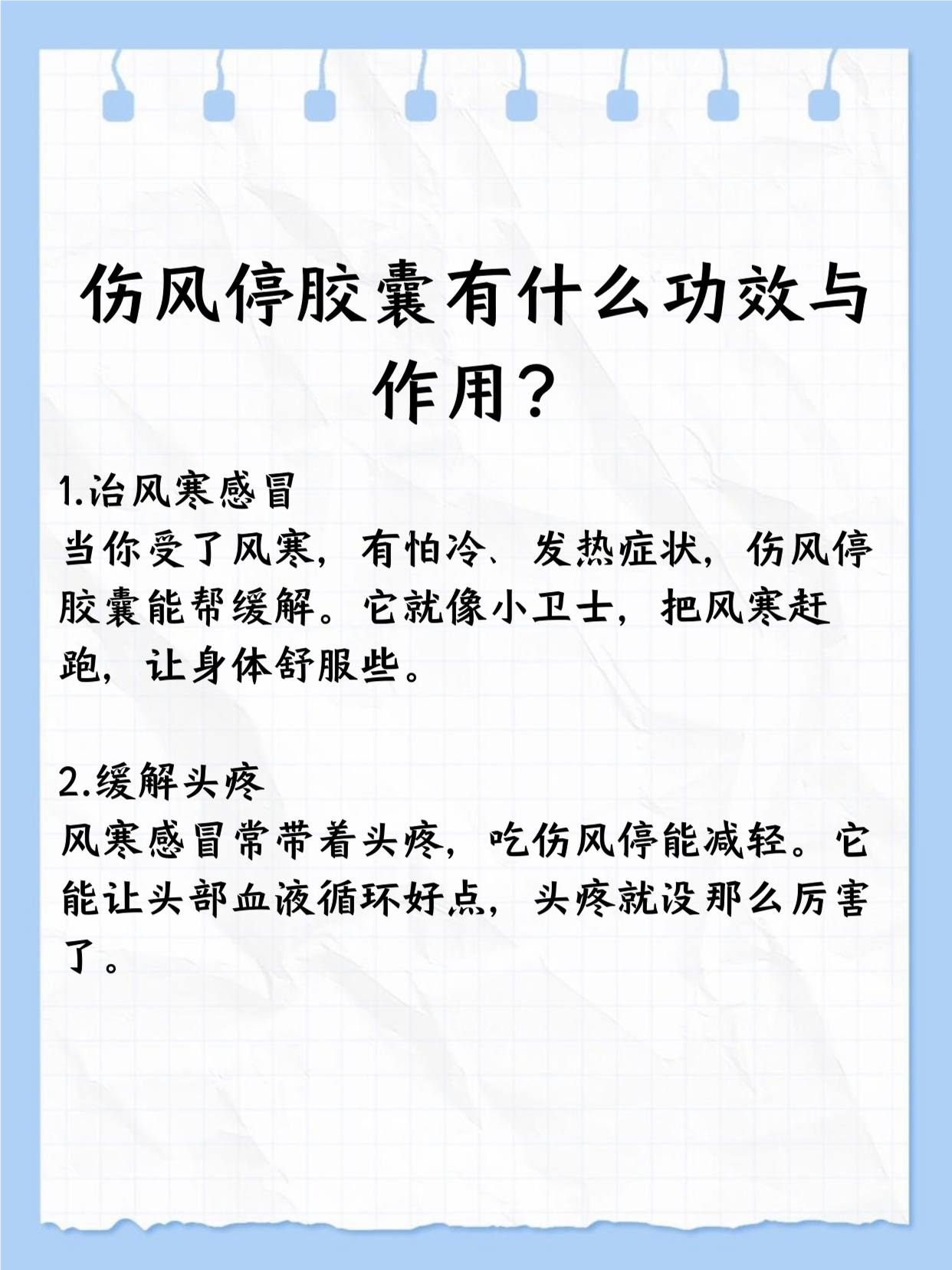 2 针对风寒感冒 伤风停胶囊主要针对的是风寒感冒,这种感冒一般是由于身体着凉引起的风寒感冒的症状包括头晕头痛流鼻涕打喷嚏等,严重时可能会导致发烧伤风停胶囊对于这些症状有较好的治疗效果3 遵医嘱结合其他药物 在必要时,可以遵医嘱结合口服阿莫西林胶囊甲硝唑胶囊布洛芬胶囊等药物使用。
