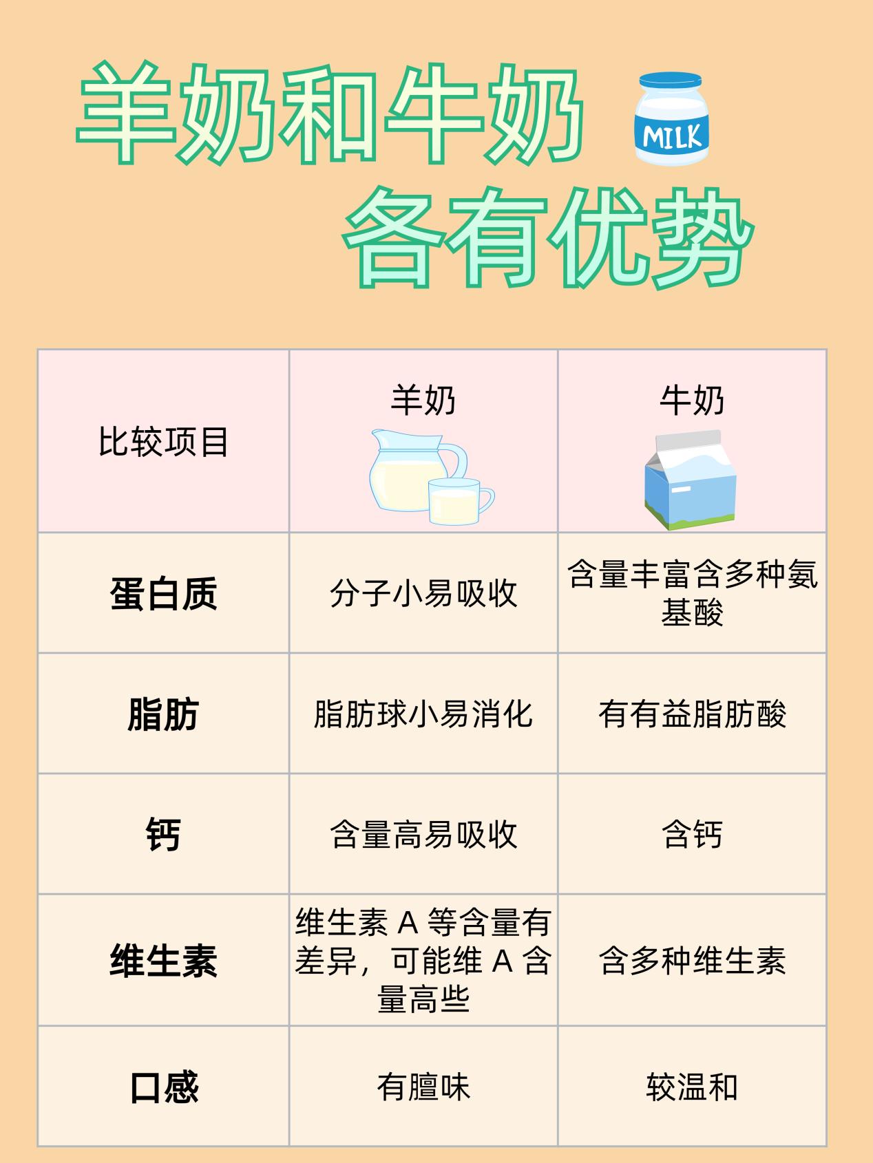 部分人耐受性略好此外,羊奶和牛奶的天然膻味较重,对气味敏感者可选择脱膻处理产品选择建议胃肠道敏感需快速补充营养或修复黏膜者可选羊奶追求高钙摄入性价比或多样化产品者可选牛奶最终需结合个人口味营养需求及身体状况,并优先选择正规厂家生产标注清晰的产品,确保质量安全。