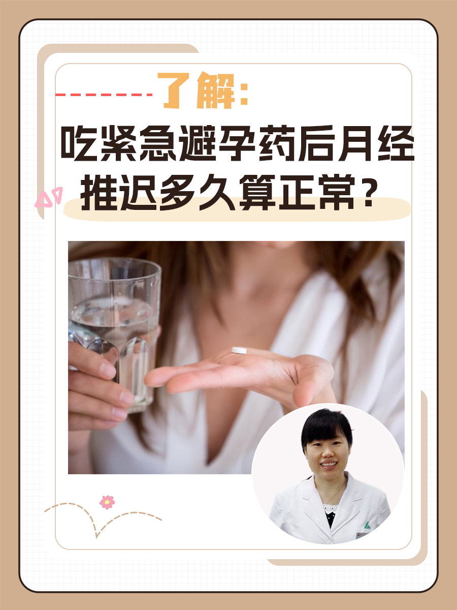 2、吃过紧急避孕药后,月经一般会推迟13周以下是具体分析正常情况由于紧急避孕药的激素含量很高,服用后可能会导致月经提前或延期一般情况下,月经提前或延期一周都属于正常范围推迟时间由于避孕药会扰乱生理周期,不少女性在服用后会出现月经推迟的现象月经一般会推迟13周,具体时间因人而异特。
