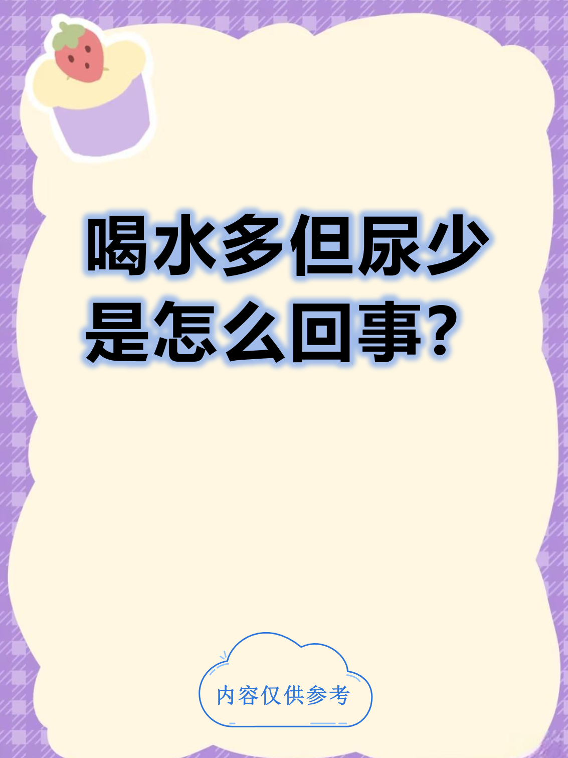 补充水分原因如果是由于脱水出汗过多或饮水较少导致的尿量减少,应首先考虑补充水分措施建议饮用0ml的水,或者根据医生指导静脉输注生理盐水0ml,并观察尿量是否有所增加药物治疗原因若尿量减少是由于肾小球滤过率下降引起的,可以考虑使用利尿剂来增加尿量措施在医生指导下。