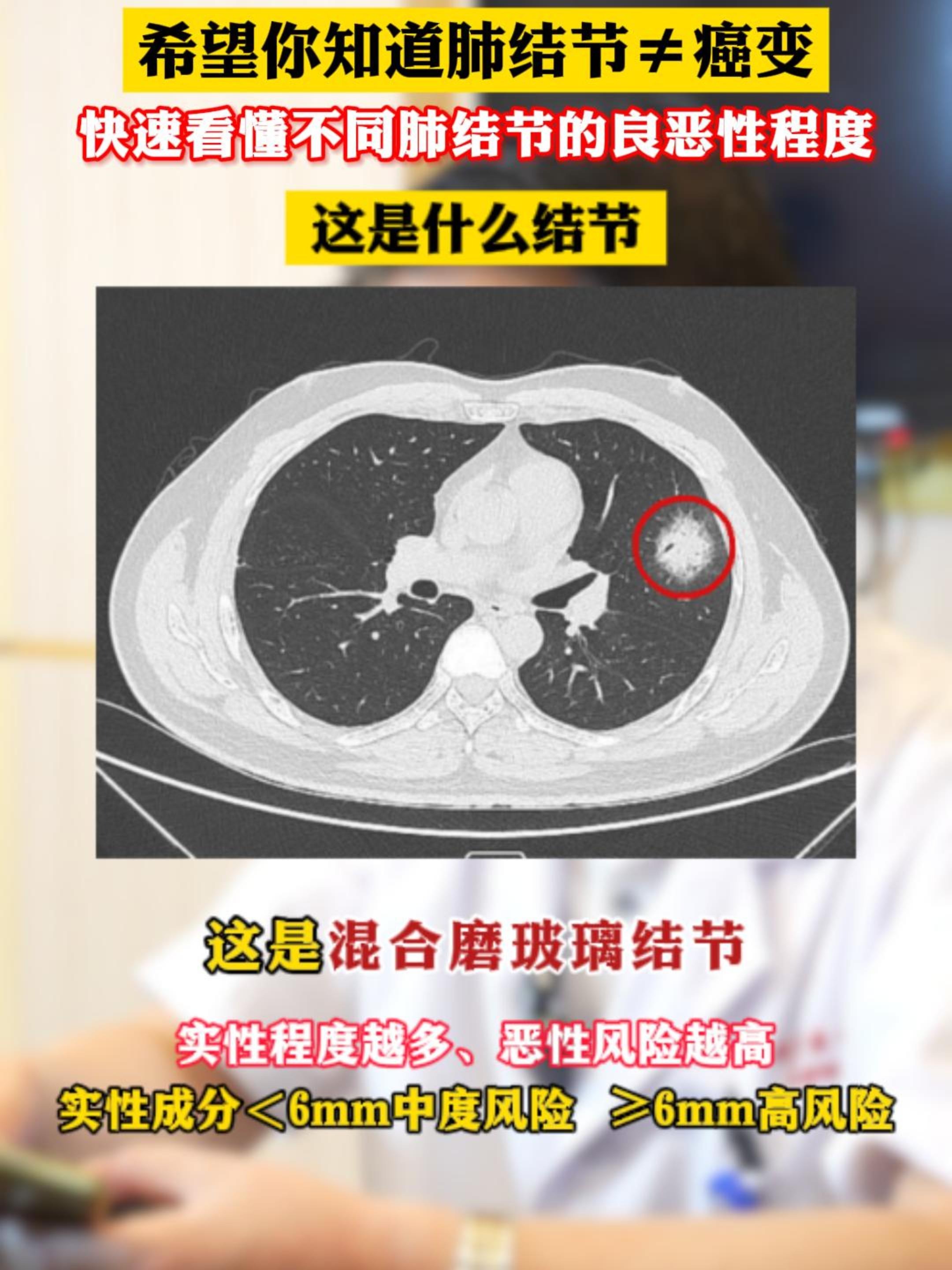 2、肺部结节的癌变时间无法一概而论,其是否癌变及癌变速度取决于结节性质具体如下1 炎症性结节通常不会癌变由细菌真菌感染或肺结核等引起的肺部结节,本质是炎症反应这类结节在规范使用抗生素抗真菌药物或抗结核治疗后,通常会在数周至数月内逐渐缩小甚至消失只要治疗及时,几乎不会发生癌变2;肺部结节多久会癌变并无明确时间界定,甚至部分结节可能终身不会癌变首先,肺部结节的病因复杂多样,肺结核肺部外伤炎症反应良性肿瘤等多种因素均可导致肺部结节的形成其中,良性病变占多数,仅当结节为恶性病变时,才可能与肺癌或其他癌症转移相关因此,不能简单地将肺部结节与癌变直接划等号对;肺部结节多久会癌变并无固定时间,多数情况下微小结节不会癌变,需动态监测判断风险微小结节通常无需过度担忧若结节直径极小如12毫米,尤其在长期接触粉尘或污染环境的人群中多见,此类结节多为良性,与肺癌无直接关联,无需特殊处理,定期观察即可单个结节需重点警惕与多发结节相比,单个结节。