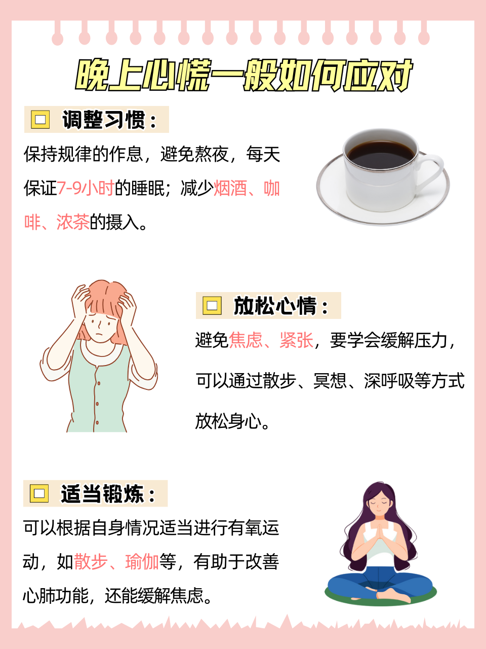 β受体阻滞剂如倍他乐克或富马酸比索洛尔等,适用于心悸症状不断加重的情况生活调整保持规律作息养成良好的睡眠习惯,避免熬夜适当运动进行适量的有氧运动,如散步瑜伽等,有助于缓解压力和焦虑饮食调理避免饮用咖啡浓茶等刺激性饮品,保持饮食均衡综上所述,女性晚上心悸心慌失眠时。
