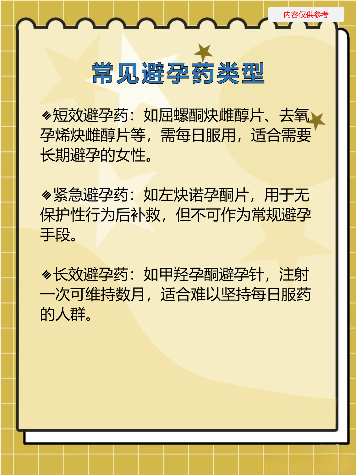长效口服避孕药成功率约为96%98%通过长效雌激素炔雌醚在脂肪组织中缓慢释放,抑制排卵但因激素含量较高,副作用较多,目前临床使用相对减少紧急避孕药有效率约70%85%,仅对单次无保护性生活有效,且需在事后72小时内服用其激素剂量大,副作用明显如恶心月经紊乱,不可替代常规避孕。