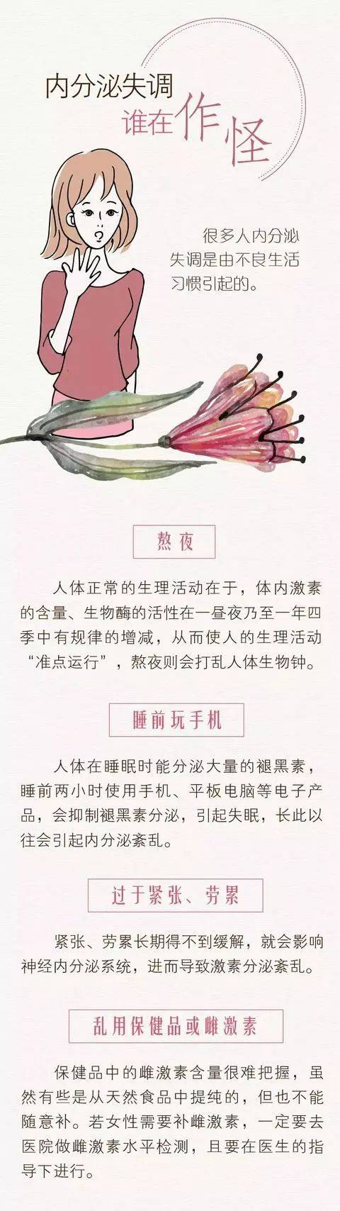 3、1环境因素 季节交替,气候变化过快时,会影响内分泌功能另外,环境污染也是内分泌失调的重要原因,由于空气中存在一些化学物质,通过各种渠道进入人体后,就会形成经过一系列的化学反应,导致内分泌失调例如外源性雌激素摄入过多,就会导致女性月经周期紊乱2生理因素 人体的内分泌腺有自我调节功能,可。