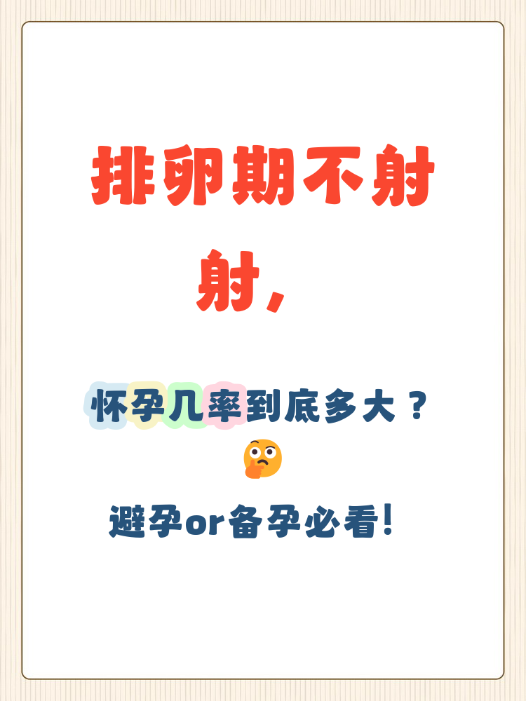因此,排卵日当天前五天及后四天为排卵期,此阶段同房有精子与卵子相遇受精怀孕的可能其他时间因卵巢不排卵,即使无避孕同房,怀孕可能性较低,称为安全期体外射精的怀孕风险体外射精指绝大多数精液未进入体内若仅有前戏的前列腺液进入体内,未有精液进入,则大概率不会怀孕但若体外射精后未擦干净或清洗,又马上再次进入体。