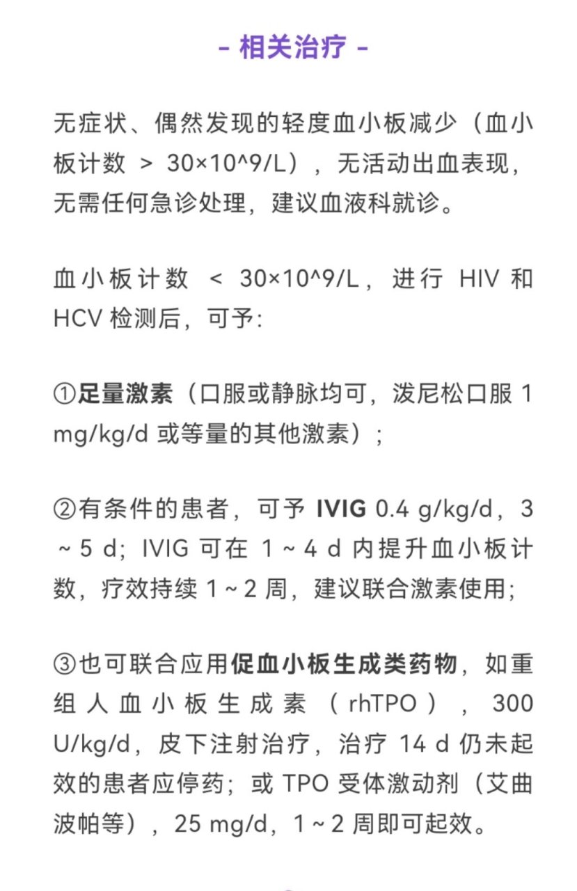 4 其他原因假性血小板减少血液采集或处理不当如血小板聚集可能导致计数假性降低先天性血小板减少某些罕见遗传病如WiskottAldrich综合征可能直接导致血小板生成减少诊断与治疗若发现血小板低,需通过血常规骨髓穿刺自身抗体检测等检查明确病因治疗需根据病因和症状严重程度制定针对病因治疗。