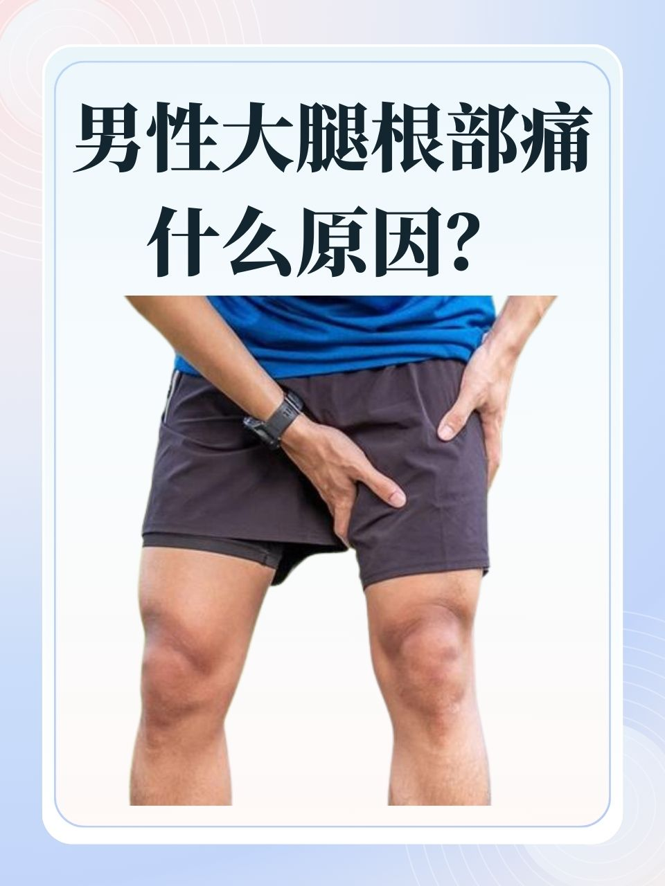 2、患者大腿根部一根筋疼,最多见的原因是内收肌的损伤内收肌损伤常常是由于患者经常进行大腿伸展运动所引起,比如老年人进行压腿的活动,年轻人进行瑜伽腿部劈叉活动,体操运动员舞蹈运动员进行腿的分叉,都容易引起内收肌的损伤大腿内收肌的损伤主要表现是大腿根部的疼痛,特别是在大腿根部的内侧;孕期女性孕期激素变化及体重增加可致肌肉骨骼负担加重,易出现大腿内侧根部疼痛,需注意休息,避免长时间站立或行走,必要时可通过适度轻柔的拉伸运动缓解症状老年人需关注骨关节炎骨质疏松等情况,骨关节炎可致关节周围疼痛,骨质疏松可因骨量丢失引发肌肉骨骼疼痛,应注意补充钙质及维生素D,必要时就;大腿根筋疼,一撇腿就疼,可以采取以下措施休息与调整生活方式注意休息减少活动量,避免过度使用疼痛的大腿根部肌肉调整生活方式避免不良的生活或劳动习惯,如长时间保持同一姿势或过度使用大腿根部肌肉药物治疗消炎药物如果是髋部周围肌肉肌腱或韧带损伤引起的疼痛,可以应用对症的消炎药物来;肌肉劳损或拉伤大腿根部肌肉如股四头肌内收肌过度使用或受伤可能导致劳损或拉伤疼痛发作期间应休息,避免过度活动,可通过冰敷或热敷缓解肿胀和疼痛疼痛缓解后,需逐步进行康复训练,增强肌肉力量和柔韧性韧带损伤髋关节囊韧带耻骨韧带等损伤也会引发疼痛治疗需以休息为主,根据损伤程度选择;大腿根筋痛可能由肌肉与软组织损伤神经源性因素骨骼与关节病变引发,特殊人群孕妇老年人运动员也有特定原因,需根据症状选择非药物干预或及时就医一肌肉与软组织损伤运动过度或急性拉伤长期未运动者突然高强度运动如跑步深蹲或姿势错误,可能导致股四头肌内收肌群急性拉伤,引发;走路时大腿根部筋疼痛可能由以下原因引起,需根据具体情况进行诊断和治疗1髋关节问题髋关节炎症关节炎股骨头坏死等疾病可能导致大腿根部筋疼痛,髋关节发育不良扭伤或脱位也会引发类似症状若疼痛持续不缓解,或伴有髋关节活动受限肿胀僵硬等表现,需及时就医进行影像学检查如X光CT或MRI。