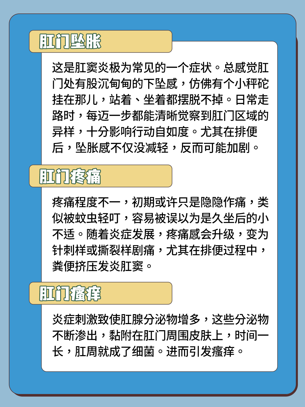 肛肠常见疾病问答主要包括以下内容一肛门直肠疾病的常见类型 常见的有痔肛隐窝炎肛裂肛周脓肿肛瘘脱肛肛管直肠息肉肛管直肠肿瘤等二出现哪些症状应该去肛肠科就诊 便血血不与大便相混,附于大便表面,或便时点滴而下,常见于内痔肛裂直肠息肉直肠癌等 肿痛肛旁突发红肿。