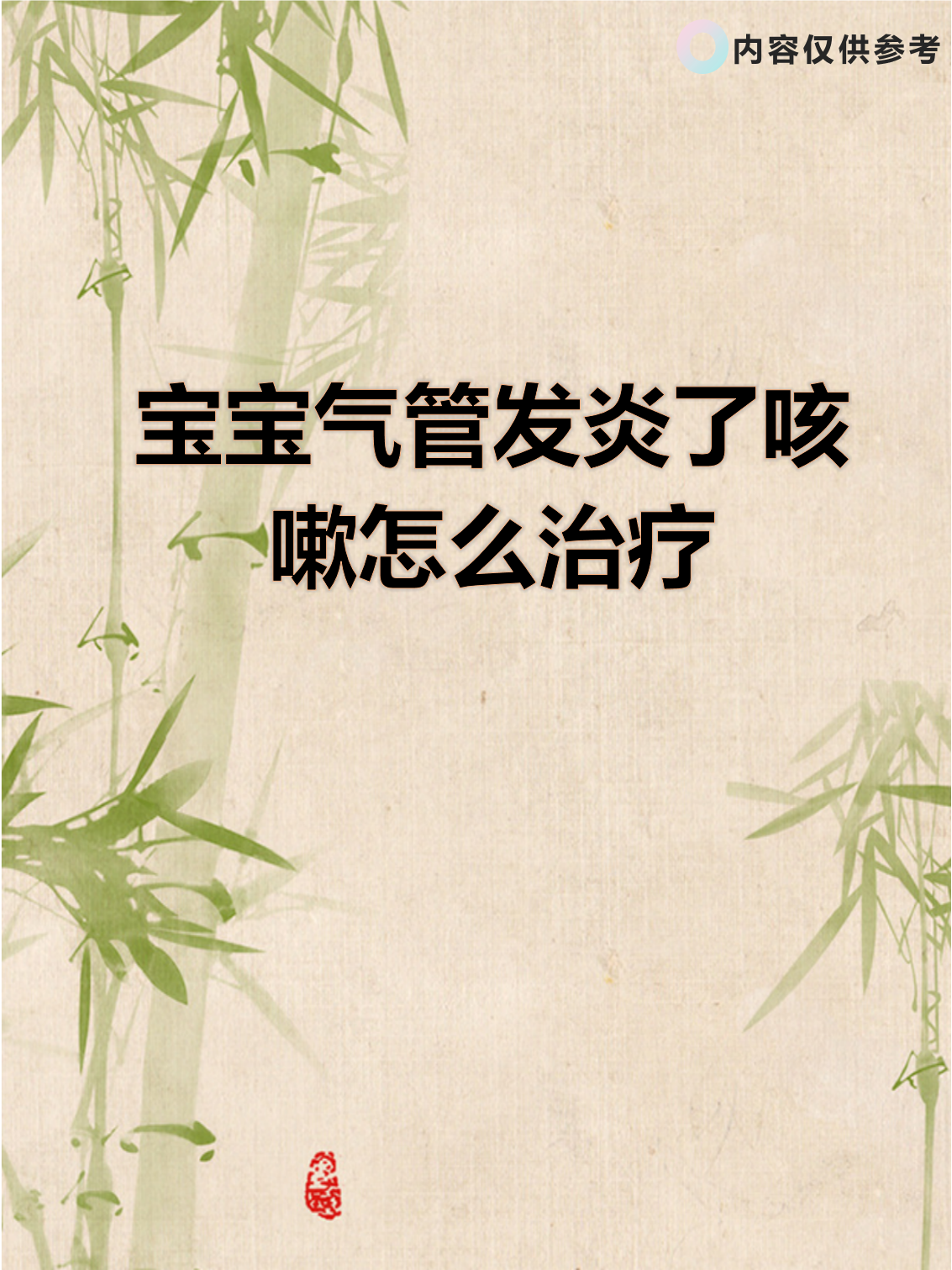 回答意见建议 婴幼儿支气管炎是指继发于呼吸道感染后,或是一些急性呼吸道传染病的一种临床症状婴儿须经常调换卧位,使呼吸道分泌物易于排出因咳嗽频繁妨碍休息时,可给镇咳药,但应避免给药过量以致抑制分泌物的咳出。