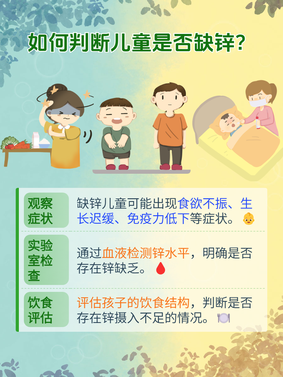 3、给孩子补锌需结合年龄需求科学判断缺锌情况,通过饮食调理为主,必要时在医生指导下用药,同时避免常见误区 具体方法如下一明确孩子每日所需锌量0~6个月每日需锌约15毫克,通常母乳或配方奶可满足需求7个月以上每日需锌约8毫克,需通过辅食或食物补充二科学判断孩子是否缺锌单一症状;给孩子补锌需结合年龄需求科学判断缺锌情况,通过饮食调理为主,必要时在医生指导下用药,同时避免常见误区 具体方法如下一明确孩子每日所需锌量0~6个月每日需锌约15毫克,通常母乳或配方奶可满足需求7个月以上每日需锌约8毫克,需通过辅食或食物补充二科学判断孩子是否缺锌单一症状不可靠挑食厌食头发发黄等表现;6岁半孩子补锌的方法如下确诊缺锌后再补儿童补锌前,必须经专业医生检查确诊为缺锌后,才可服用锌制剂小儿每日补锌量一般为06~15毫克公斤体重,需严格按照医嘱或说明书服用注意服用时间与方式锌制剂不宜空腹服用,应在餐后服用,以减少对胃肠道的刺激牛奶不利于锌的吸收,故锌制品不宜;小孩缺锌的补充方式主要有饮食补锌锌剂补充,同时特殊人群需注意相关事项饮食补锌动物性食物含锌量丰富且吸收率高瘦肉每100克含锌约3 6毫克,牛肉富含蛋白质且锌元素有助于孩子生长发育海鲜类中牡蛎每100克含锌量可达712毫克,是优质锌来源,虾类每100克含锌约144毫克动物肝脏如猪肝。