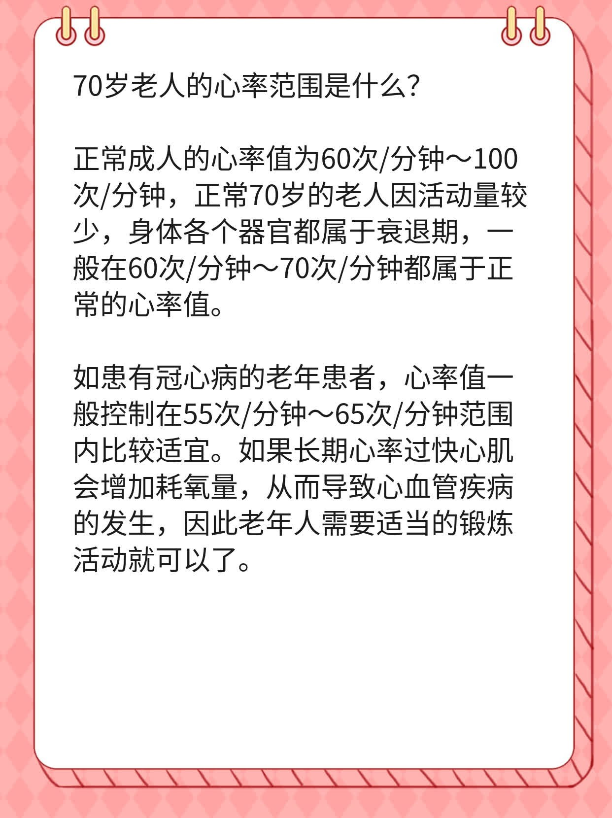 11、一初步评估心率范围与症状正常成年人静息心率一般为60100次分钟,低于60次分钟属于心率低但长期运动人群如运动员静息心率可能低于60次分钟,若无不适症状,可能为生理现象,无需特殊处理儿童心率因年龄而异,若低于对应年龄段正常范围下限且伴有头晕乏力黑蒙胸闷心悸甚至晕厥等症状。