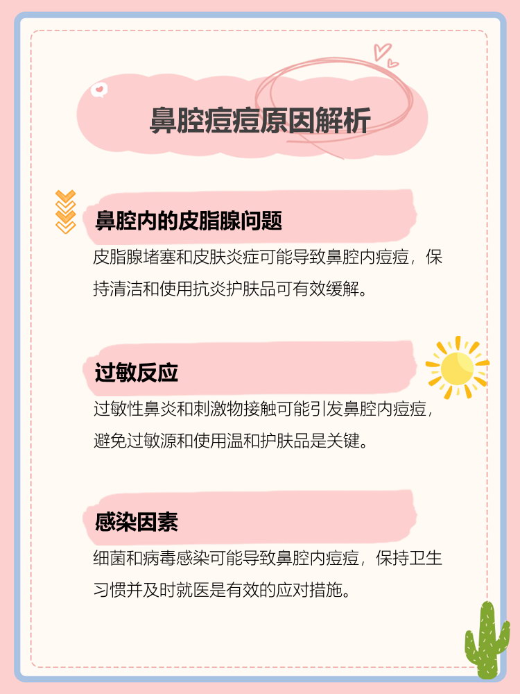 诱发痘痘因此,选择适合自己肤质的化妆品至关重要综上所述,鼻子长痘是生理因素生活习惯和外部环境综合作用的结果为了预防和改善痘痘问题,建议保持良好的作息和饮食习惯,注意面部清洁,并选择适合自己肤质的化妆品同时,尽量避免长时间暴露在污染严重或紫外线强烈的环境中。