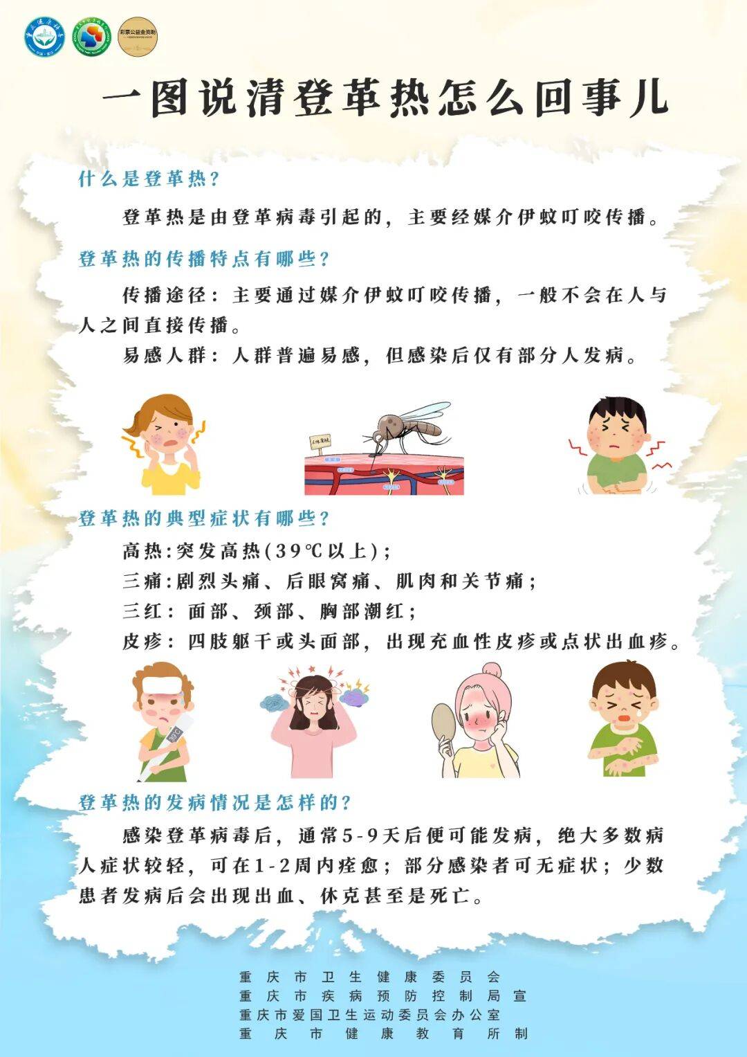 9、分类 医疗健康 内科 解析登革热是登革热病毒引起伊蚊传播的一种急性传染病临床特征为起病急骤,高热,全身肌肉骨髓及关节痛,极度疲乏,部分患可有皮疹出血倾向和淋巴结肿大病因 一传染源患者和隐性感染者为主要传染源,未发现健康带病毒者二传播媒介伊蚊,已知12种伊蚊可。