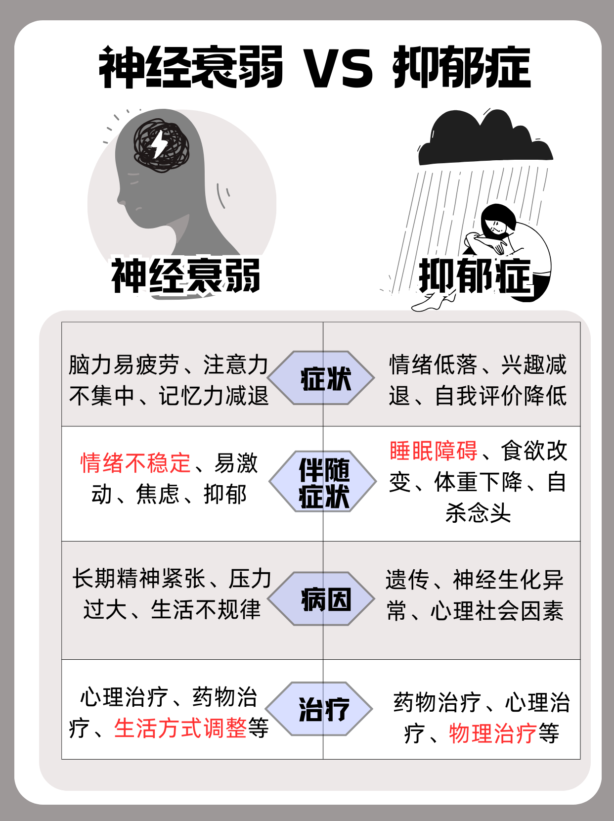 6、神经衰弱是以精神容易兴奋脑力容易疲乏或者是疲劳为主要特征的一类综合症神经衰弱与焦虑抑郁常常为共生关系,着手于抗焦虑抑郁治疗是非常重要的 目前神经衰弱类患者更多的可能是考虑作为抑郁症焦虑障碍的不同亚型或者是其他躯体形式障碍中的一类患者衰弱综合征在神经科中保留诊断叫做疲劳综合症,但不。