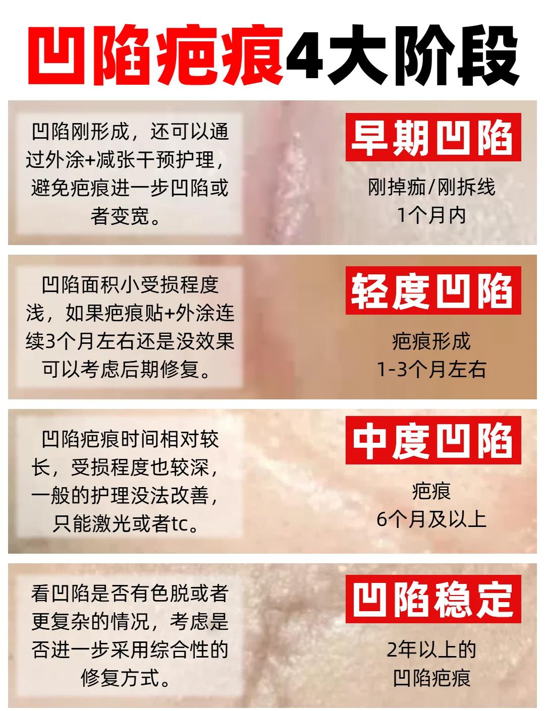 11、虽然通过一段时期的治疗,脸上的青春痘已经痊愈了,但是由于太晚就医或是之前痘痘长得太厉害,脸上本来长痘痘的地方留下了一大堆颜色深浅不一黑黑红红的痕迹,严重的甚至会有坑坑洼洼的疤痕,让人联想到桔子皮或者是月球表面凹洞,这就是我们俗称的所谓“痘疤” 痘疤是因为感染发炎或外力挤压所形成,往往是因为在青春。