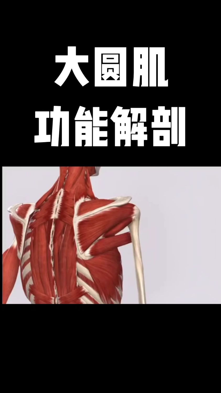 大圆肌 teres major 起止点位于小圆肌的下侧,其下缘为背阔肌上缘遮盖,整个肌肉呈柱状,起于肩胛骨下角背面,肌束向外上方集中,止于肱骨小结嵴作用肩关节旋内肩关节内收肩关节后伸在无阻力的运动中,不表现出电的活动,但在做抗阻力动作时,它是原动肌,由于该肌对手臂的作用同背阔肌很相象,所以,被称为“背阔肌的小助手”锻炼方法蝴蝶机。