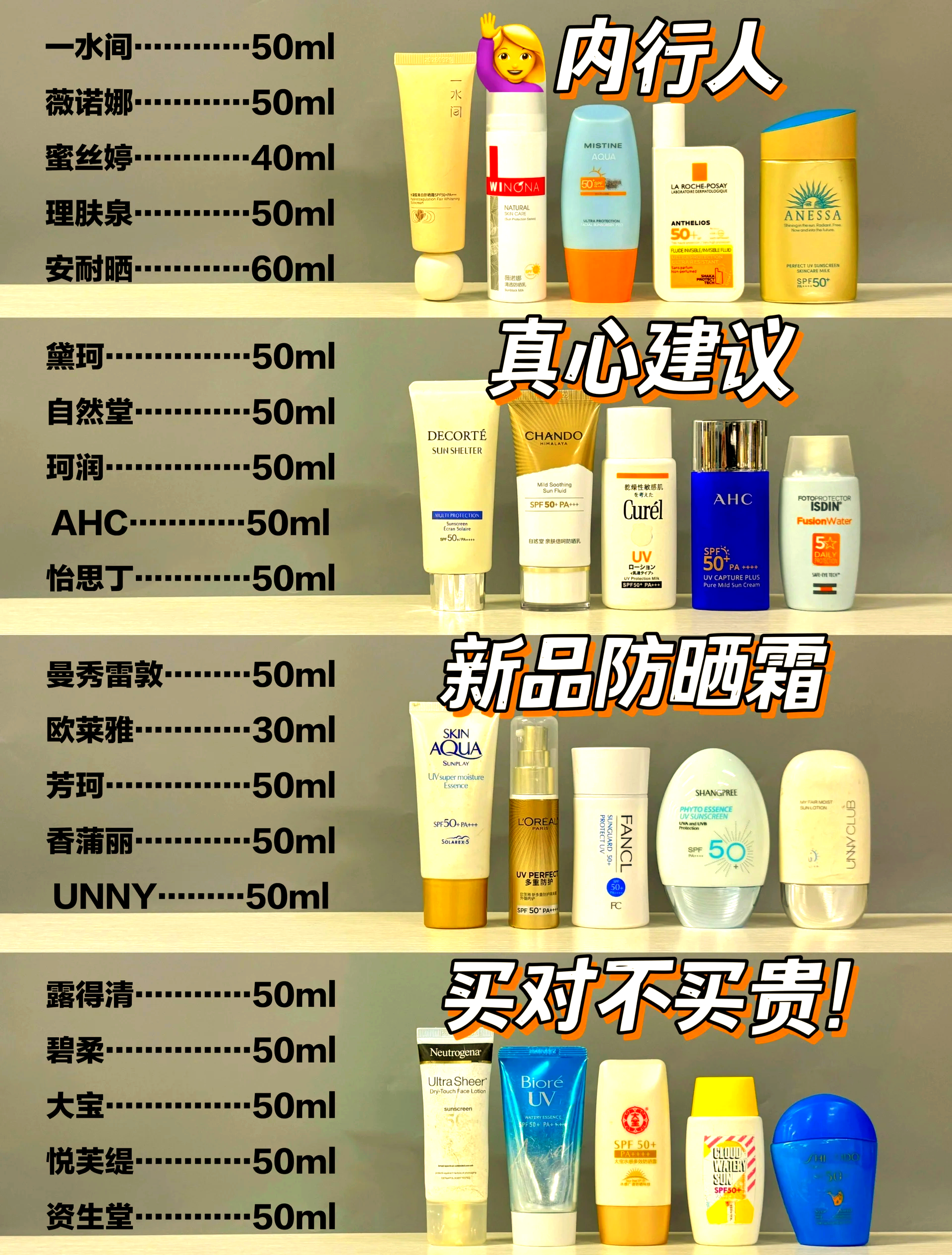 6、3YNM防晒 49元 SPF50 PA+++ 粉色的瓶子太嫩了吧!挤出来是乳白色的霜妆,很容易就推开了,这款是物理化学双重防晒,防晒效果很不错,使用感很好而且他最区别于别的防晒的地方就是她有美白淡斑的作用,用一段时间就能感觉出来,真正的养护合一! 4嘉娜宝ALLIE防晒 198元 SPF50+ PA++++ 很大一罐,乳液的质。