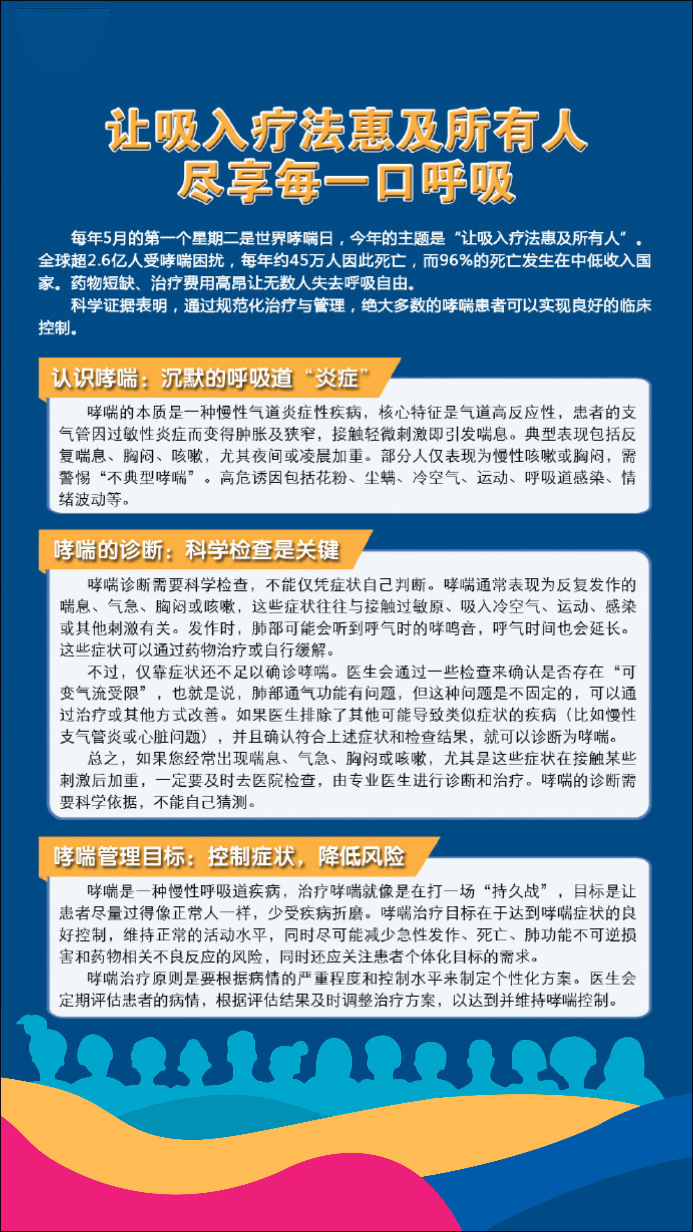 哮喘病人日常需注意以下事项一避免过敏原接触哮喘患者需主动规避花粉尘螨动物毛发等常见过敏原花粉高峰期减少外出,避免接触花草室内保持清洁,定期打扫并更换床品不饲养宠物或定期为宠物洗澡,减少毛发与皮屑残留二预防呼吸道感染呼吸道感染是哮喘发作的重要诱因患者应注意保暖,避免着凉。