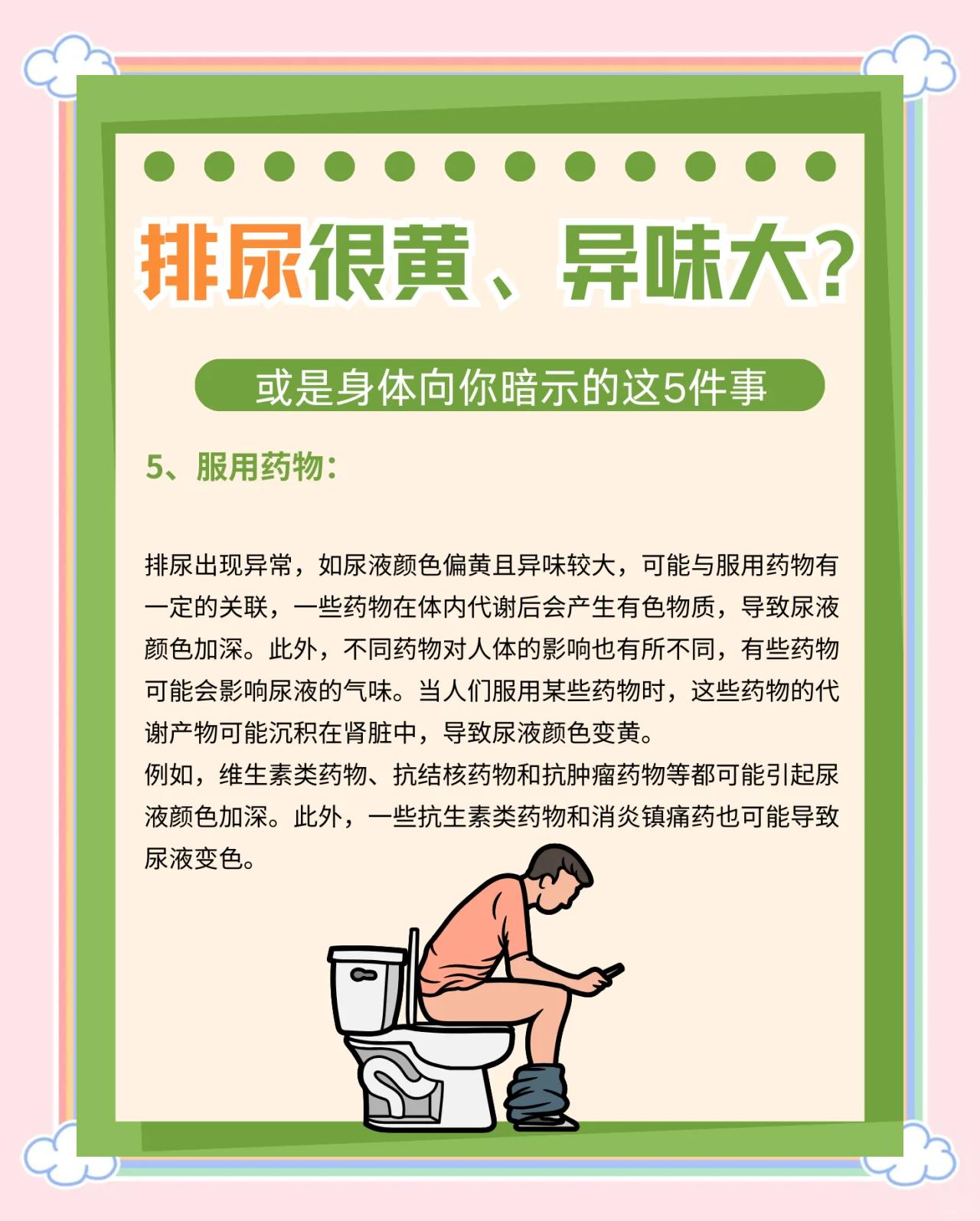 4、小便发黄有异味通常是尿液浓缩的表现以下是具体分析小便发黄的原因主要是因为肾脏形成的尿液不够,这通常是由于喝水量不够导致的当体内水分不足时,尿液会被浓缩,使得尿液中的色素成分浓度增加,从而使尿液呈现黄色尿液有异味的原因尿液中的异味通常来源于尿液中的大量代谢产物,如硝酸盐和各种。