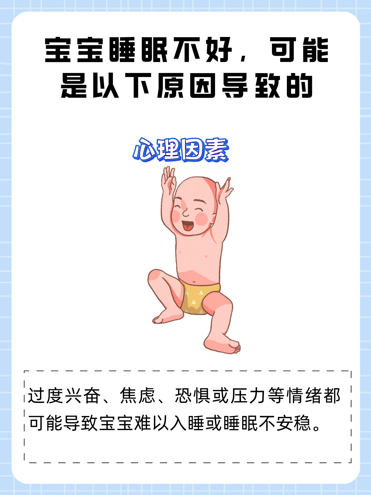 1、宝宝睡觉不安稳的原因 1生理因素由于婴幼儿神经系统发育尚不完善,神经的兴奋与抑制功能不够协调,易兴奋,稍有外来的刺激则可能引起神经系统的兴奋导致宝宝惊醒,这是一种正常的生理现象,随着婴儿的渐渐长大,神经系统的功能一步步完善,这种生理现象会自然消失2进食过饱常言道“胃不合,卧;白天睡的太多也可影响晚上的睡眠7出牙或身体不适 宝宝出牙期间往往会有睡不安稳的现象有时几夜反复折腾之后妈妈才发现,宝宝的牙床冒出了白白的小牙可见出牙还是有些疼痛的其他疾病当然也会引起睡眠不安生病或发烧前的夜晚往往是翻覆不宁的这些都需要细心的观察和判断。
