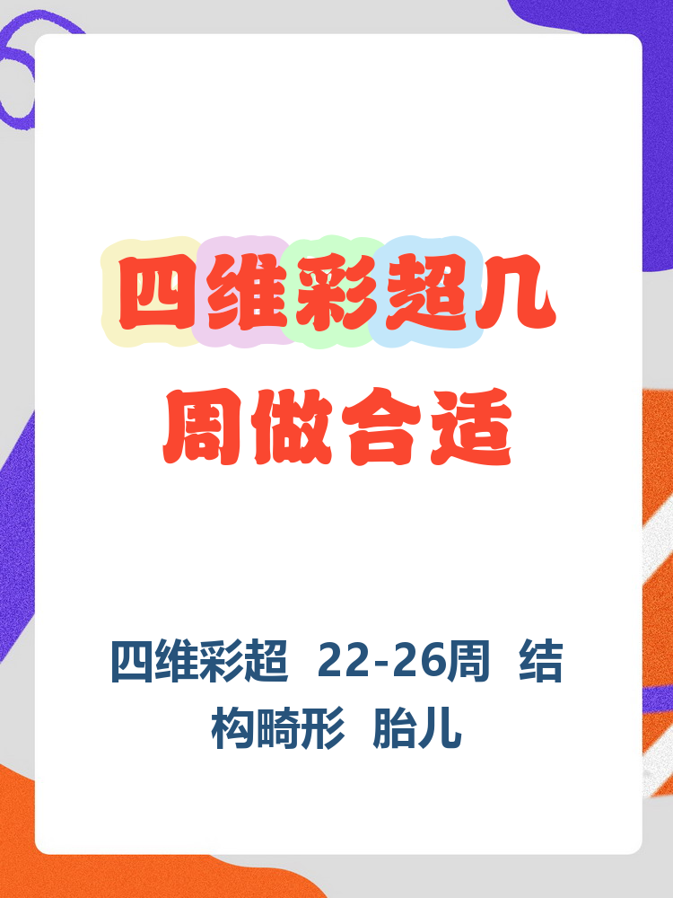 做四维超声的最佳时间为孕中期,即妊娠1824周具体分析如下孕中期1824周的核心优势此阶段胎儿大小适中,羊水量充足,胎儿在子宫内的活动空间较大,能够清晰显示各器官结构通过四维超声可观察胎儿头颅面部脊柱心脏四肢等重要器官的形态与结构,有效筛查唇腭裂先天性心脏病脊柱裂等;但一般仍建议在2024周进行初步四维检查,以便尽早发现胎儿异常高危因素可能影响胎儿发育,早期发现问题可及时干预双胎生长发育差异较大时若双胎间存在明显发育差异,可能需在更早或更晚时间再次检查,以密切监测胎儿发育但基础最佳时间仍为2024周,后续根据个体差异调整检查安排例如,若一胎生长;一般在怀孕20周28周做较为合适,因为胎儿20周左右时正是大脑突飞猛进的发育时期,过早接受四维彩超可以因为胎儿发育较小,一些组织看不清,不能达到筛查畸形的目的四维彩超可以清晰地显示出体内的宝宝有无唇裂腭裂骨骼发育异常心血管畸形等异常存在当然,因不同孕妇之间的差异,做四维彩超的具体;四维彩超的最佳检查时间一般为怀孕2226周此阶段胎儿结构已基本形成,且胎儿大小与羊水量适中,在子宫内的活动空间较大,骨骼回声对图像的干扰较小,因此能获得更清晰的成像效果,便于医生观察胎儿的发育状况需提前预约,建议在怀孕16周左右开始咨询医院并完成预约,避免因排队延误检查时机检查并非次数。