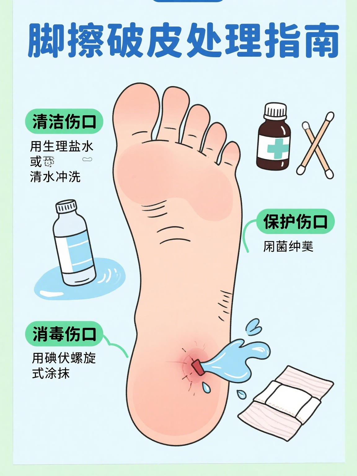 3、外伤处理需根据伤口类型选择合适方式,小伤口可自行处理,大伤口需及时就医 以下是具体处理方法和注意事项伤口处理方式小伤口处理准备工具准备酒精磺酊或磺伏双氧水红汞生理盐水等清洗消毒水剂,以及纱布块棉球棉签绷带胶布创口贴等敷料类用品自行制作的纱布块棉球棉签,可。