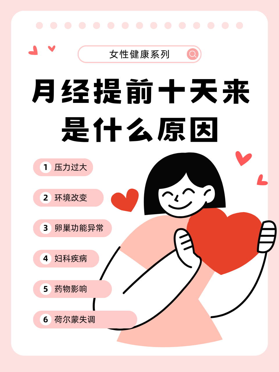 偶尔一次例假提前10天可能由以下原因引起,需结合具体情况综合判断1 情绪波动压力焦虑紧张等情绪因素可能通过影响下丘脑功能,干扰激素分泌,导致例假周期紊乱建议通过运动冥想或心理咨询缓解情绪,保持心态平和2 生活方式改变作息不规律如熬夜昼夜颠倒过度运动饮食失衡如暴饮暴食或。