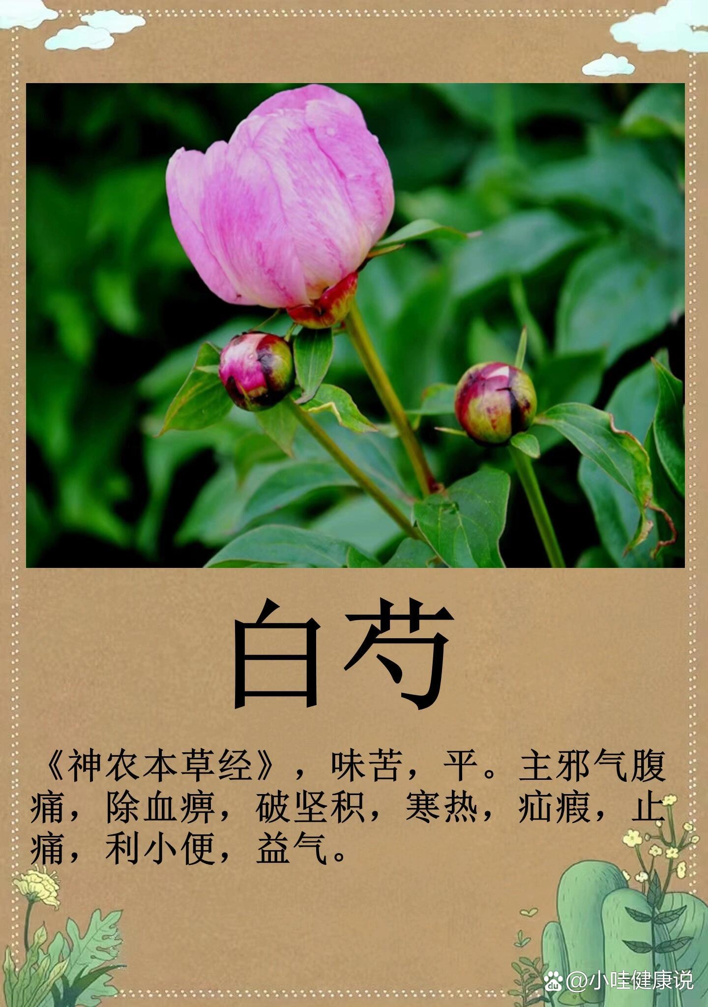 1 养血调经白芍入肝脾经,能养血敛阴调经止痛,主治血虚萎黄面色无华及月经不调经期腹痛等症其酸寒之性可调和营血,改善肝血不足导致的月经紊乱2 敛阴止汗白芍味酸收敛,善治营卫不和之表虚自汗活动后加重及阴虚盗汗夜间异常出汗,通过敛阴固表恢复汗液正常排泄3 柔肝止痛白芍。