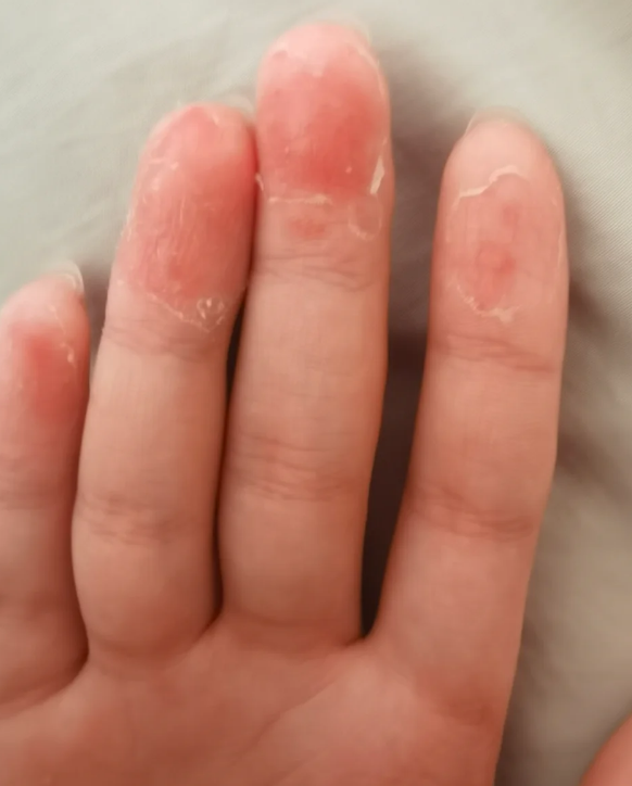 手指肚脱皮主要由以下原因造成汗疱疹是常见原因之一汗疱疹初期表现为手部皮肤尤其是手指肚出现密集小水疱,伴有瘙痒或灼热感进入后期,水疱内的疱液逐渐干涸,疱壁因脱水而变薄碎裂,最终形成脱屑反应这种脱皮通常呈片状或点状脱落,与疱壁干涸的物理过程直接相关湿疹或接触性皮炎也可能导致;3 感染性疾病恢复期表现麻疹风疹猩红热等病毒感染性疾病在恢复期可能出现皮肤脱屑,手指部位尤为明显这是由于病毒复制导致表皮细胞坏死,新细胞生成后旧角质层脱落所致,通常无需特殊处理,但需注意保持皮肤湿润4 其他潜在因素接触性皮炎如对金属橡胶过敏可能引发局部红肿水疱及脱皮营养缺乏如维生素AB族维生素;手指尖脱皮可能由以下原因引起,需根据具体成因采取针对性措施一皮肤干燥环境气候干燥如秋冬季节暖气房空调房会导致皮肤水分流失加快,手指尖因缺水出现脱皮应对方法日常使用保湿护手霜,洗手后及时涂抹避免频繁使用碱性肥皂或洗手液,减少皮肤油脂破坏二接触刺激性物质洗洁精洗衣粉;手指头脱皮常见原因如下皮肤干燥频繁接触刺激性物质如碱性肥皂过度清洁手部或处于干燥环境,会破坏皮肤屏障功能,导致水分流失例如秋冬季节或频繁洗手后未及时保湿,手部皮肤易粗糙脱皮接触性皮炎接触过敏原如金属镍橡胶漆树或刺激物如强酸强碱洗涤剂后,接触部位可能出现红斑。