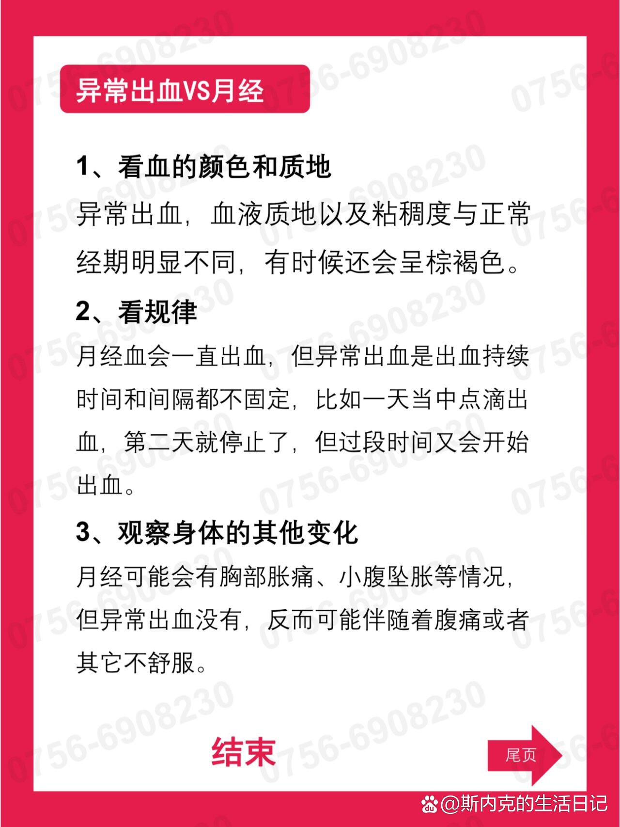 尿HCG检测以及B超检查进行诊断若血HCG阳性且B超检查未见宫内孕囊,或血HCG超过一定阈值而宫内未见孕囊,则可诊断为宫外孕综上所述,宫外孕和月经出血在出血时间出血量与性状伴随症状以及检查与诊断方面均存在显著差异对于任何月经异常表现,都应及时就医检查,以排除妊娠及宫外孕的可能性。