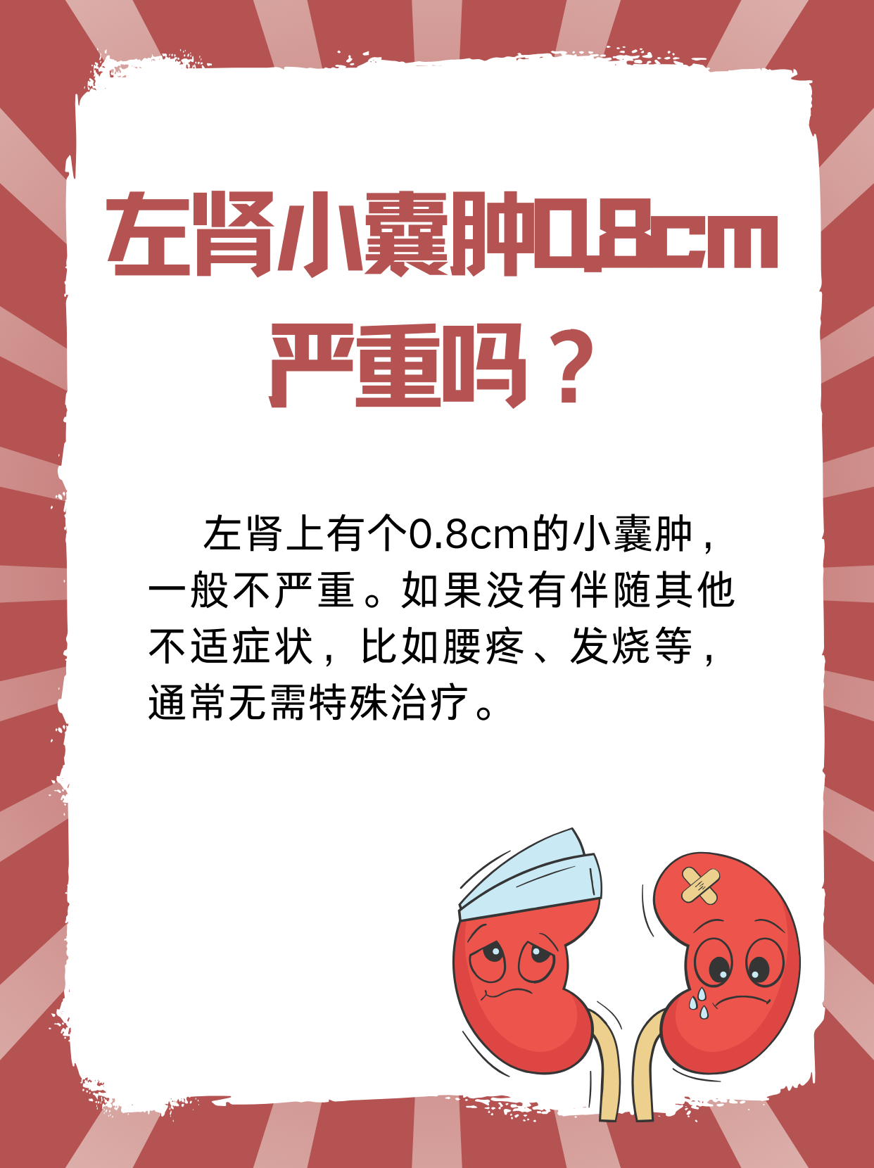 肾囊肿若不及时治疗,可能带来以下危害1 腰痛当肾囊肿体积较大时,可能牵拉肾脏被膜或压迫周围组织,引发腰痛疼痛程度因人而异,轻者仅感轻微不适,重者可能出现剧烈疼痛,影响日常生活2 血尿肾囊肿可能压迫或破坏肾脏血管,导致血管破裂出血,引发血尿血尿颜色可为鲜红色或暗红色,有时伴血块。
