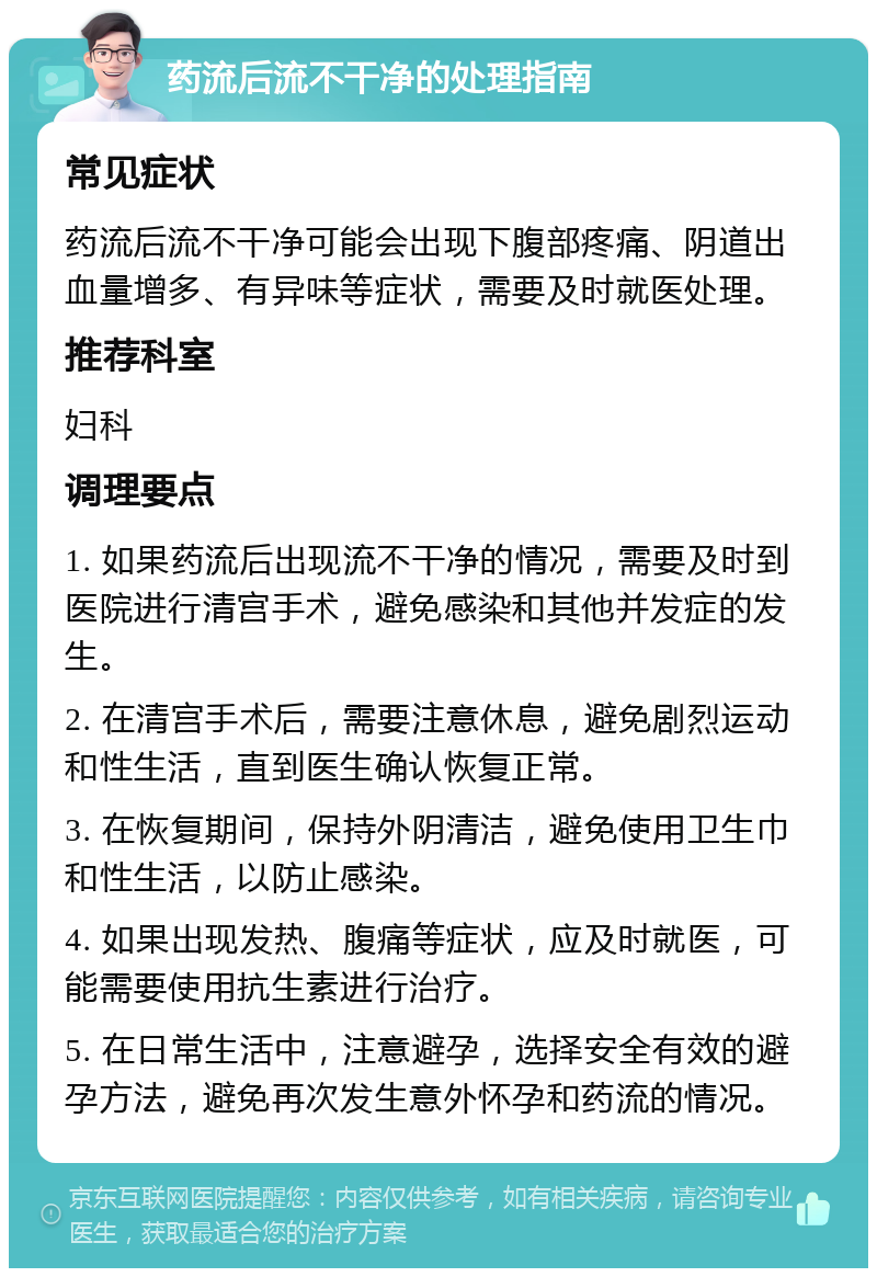 异常情况及表现若药流后肚子痛持续不减加剧,或伴有大量出血发热等症状,则可能是异常情况的表现感染是药流后常见的并发症之一,可能导致肚子痛加剧并伴有发热残留组织也是可能的原因,若药流未完全排出孕囊和宫内组织,残留物可能引发持续的肚子痛和出血缓解方法为缓解药流后的肚子痛,可采取。