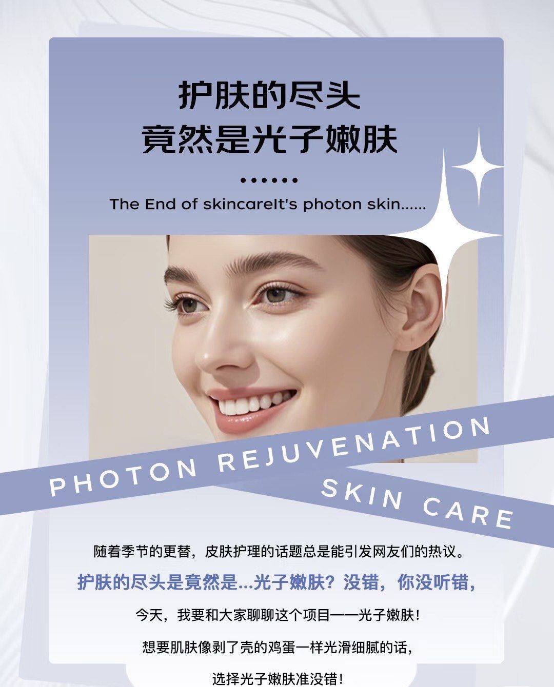 3 收缩毛孔 光子嫩肤可以刺激皮肤胶原蛋白的增生,达到收缩毛孔的效果同时,它还能调节皮肤的分泌,使毛孔更加通畅,预防毛孔堵塞和粉刺的产生4 提高皮肤弹性 光子嫩肤可以促进胶原蛋白和弹性蛋白的生成,提高皮肤弹性,有助于解决皮肤松弛的问题,使肌肤更加紧致有弹性5 平滑皮肤纹理 光子。