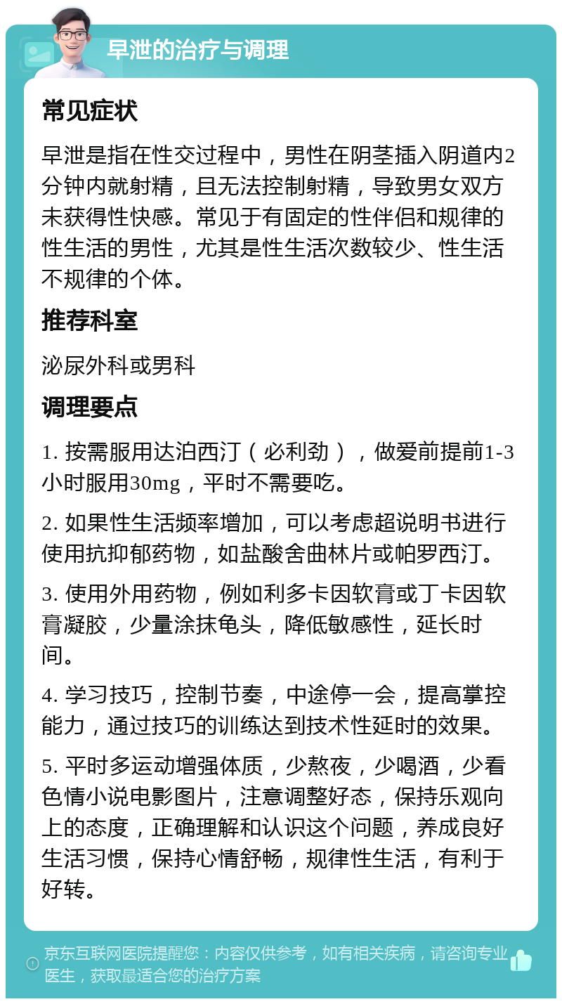 2、50岁以上的男性,建议40天进行5次左右的性生活较为适宜,多数健康夫妇建议每周进行12次性生活较为合适如果性欲较强性功能较强,可以每周进行67次左右的性生活,正常的性生活常带来精力充沛精神愉悦女性或男性有炎症时要禁止性生活,避免交叉感染,没有生育要求,过性生活时要注意避孕;如果夫妻性交过于频繁,会导致男性精子不足,精子质量相对较差,直接影响受精另外,精子作为一种抗原性物质,频繁刺激女性,会使女性不断产生抗精子抗体,从而使男性精子凝集或失去应有的活力,最终造成男性不育从上面的介绍中,我们已经能够清楚的知道,过度的性生活会导致男性不育所以,夫妻在有性生活;情人之间的性生活可能会更加热烈和持久,但这并不意味着这种状态是正常的或唯一正确的几分钟的性生活并不一定意味着有问题,重要的是双方的满意度和情感连接性生活的时长受到多种因素的影响,包括生理心理和情感状态如果你们之间的性生活时间较短,可能是因为双方的生理状况精神状态或情感投入度;指导意见注意性生活过于频繁可能导致宫颈糜烂和宫颈炎和宫内膜炎,盆腔炎等啊祝你健康;此外,需要注意的是,这种行为是不道德和不尊重他人的表现,应该尽量避免如果一个人已经有了婚姻或稳定的恋爱关系,那么她的行为会对其他人的感受和生活造成影响总之,女人出轨和情人上床次数越多是否会导致感情越来越深是一个复杂的问题,需要综合考虑多种因素建议遵守道德规范和社会伦理,以建立一个。
