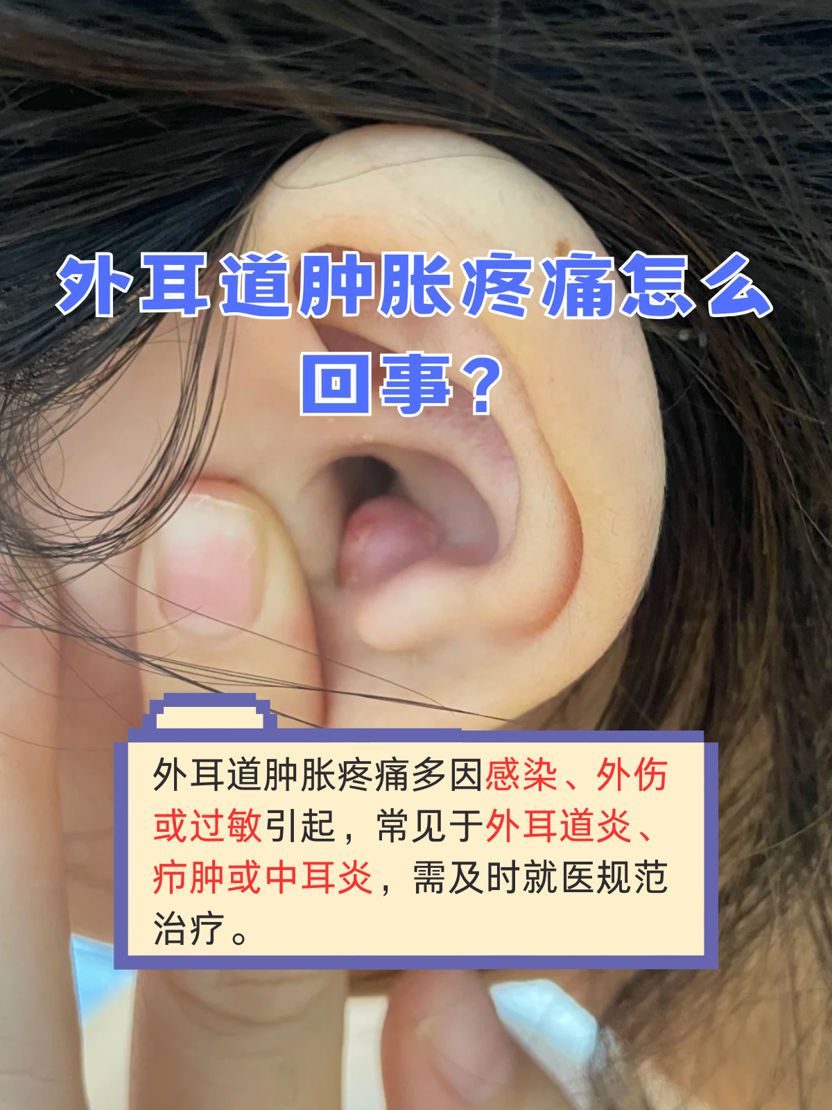 1耳部疼痛与肿胀外耳道炎患者最典型的症状是外耳道区域出现明显疼痛,尤其在触碰或牵拉耳廓时疼痛加剧疼痛可能伴随局部肿胀,导致耳道空间变窄,严重时可能影响耳部正常结构2分泌物异常外耳道表面常覆盖淡黄色或黄白色分泌物,质地可能为脓性或黏稠状这些分泌物是炎症反应的产物,可能伴随异味,提。