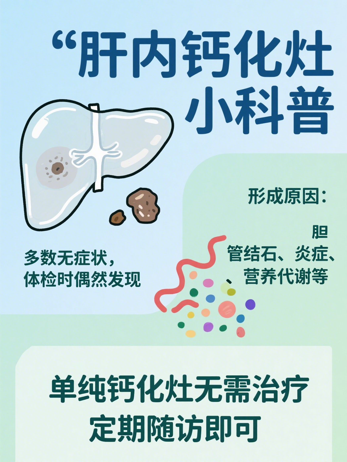 6、这个一般理不会的,钙化灶是肝内的小钙化点,不是肿瘤也不算是严重的疾病,可以说有可能是慢慢形成的,不影响健康建议以后可以定期复查肝功能和肝脏彩超,如果有异常,及时治疗肝功能就可以了。