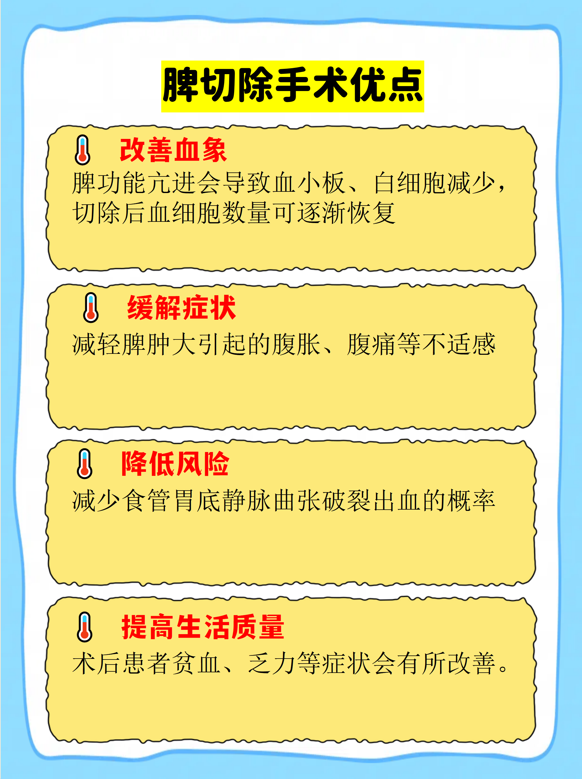 需使用免疫抑制剂或生物制剂若为心血管疾病如门静脉血栓,需抗凝或溶栓治疗对症治疗对于脾功能亢进引起的血小板减少或贫血,可考虑脾切除手术,但需严格评估手术指征如脾脏显著肿大严重血细胞减少等定期监测治疗期间需定期复查血常规肝功能及脾脏影像学,评估疗效及调整方案。
