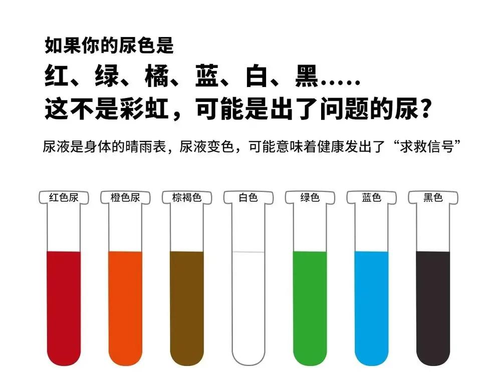 尿液的颜色可以反映健康状况,不同颜色指示着不同的问题正常情况下,新鲜尿液呈浅黄色,这是因为含有尿色素尿液颜色会因喝水量而变化,喝水多时尿色浅,喝水少时尿色深尿液放置一段时间后,颜色也会变深,这是因为尿色素被氧化尿液颜色变化还可能与以下情况有关1 无色尿可能是糖尿病肾炎。