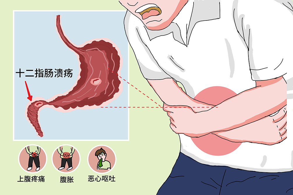 4、十二指肠溃疡的症状较为严重,具体表现如下一疼痛症状严重且具典型性十二指肠溃疡的疼痛以上腹部节律性疼痛为特征,性质多样,包括钝痛胀痛灼痛或剧痛疼痛多在空腹时发作如餐后24小时,进食或服用抗酸剂后可缓解这种节律性与胃酸分泌刺激溃疡面直接相关空腹时胃酸分泌增多,直接刺激溃疡。