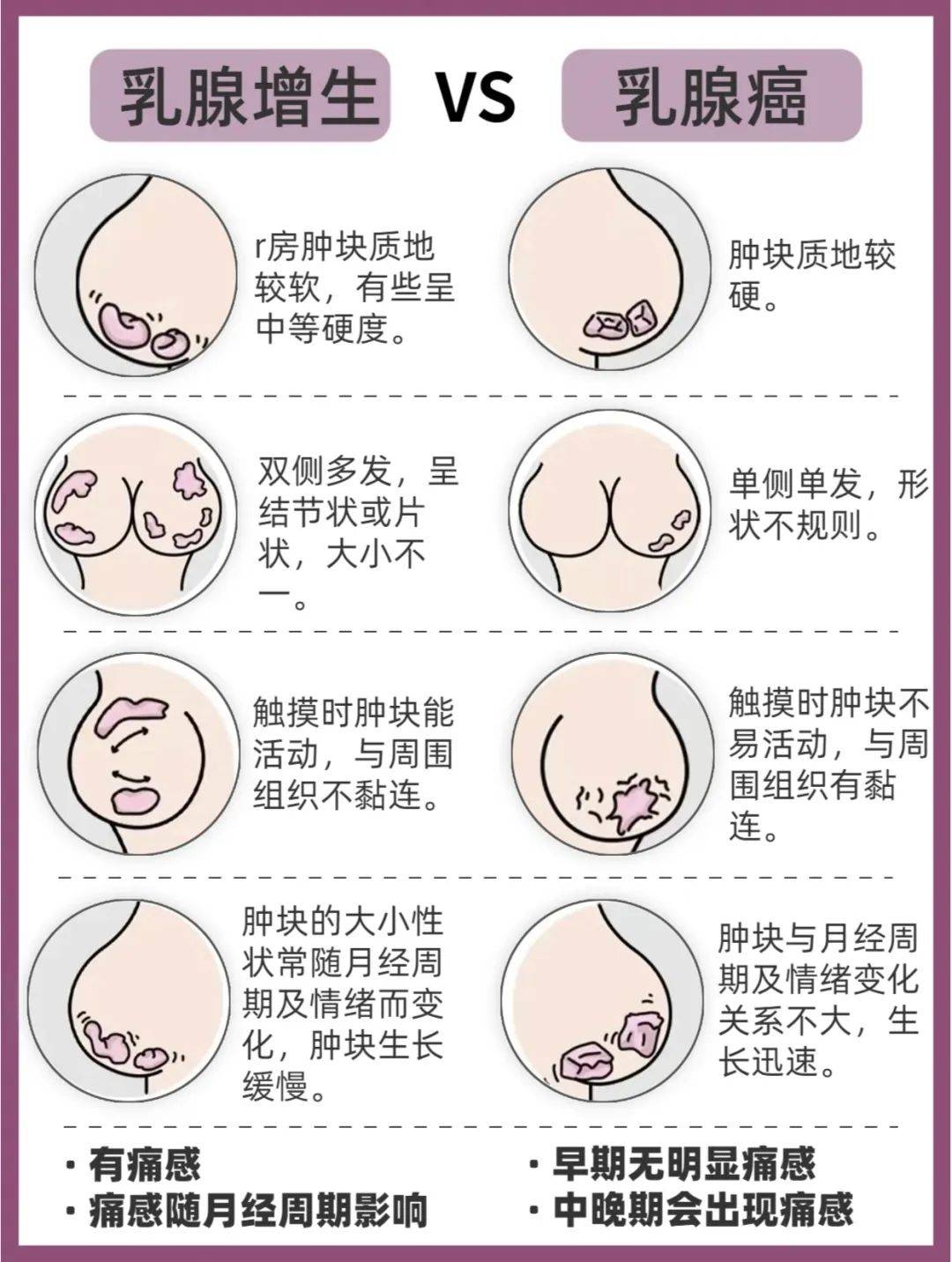 乳腺癌的早期症状表现主要有以下四类一乳房肿块早期多表现为无痛单发质地较硬的肿块,边界不清晰且活动度差年轻女性肿块良性比例较高,但恶性风险仍需警惕中老年女性出现肿块时,恶性可能性显著增加肥胖女性因乳房组织致密,可能影响肿块触诊的准确性,需结合影像学检查如超声钼靶进一步。