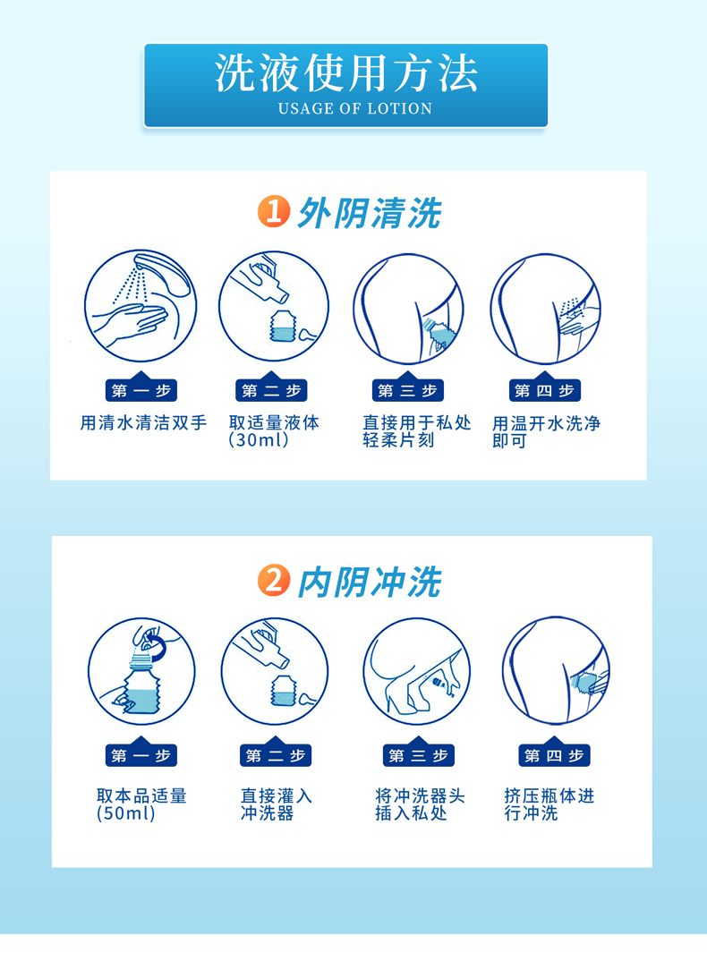 3、回答您好,您可以先用清水外阴的,然后用稀释后的洗剂清洗阴道的,停留五分钟左右后在用温水清洗就可以的如果比较严重的话,可以阴道注入50%浓度稀释液保留5分钟,外阴用洗液直接涂擦12分钟或10%浓度坐浴15分即可一日2次,7天为一疗程用洗剂洗后不用再用清水洗,在下次清洗前用清水先清洗外阴。