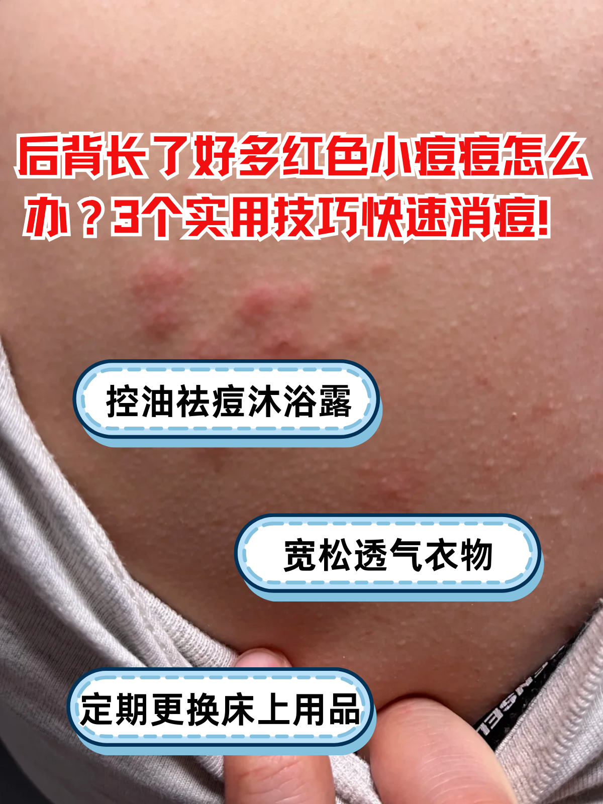 不知道大家有没有注意到自己腿上的肌肤,有的人腿上的肌肤毛孔被堵塞,长了小颗粒,该怎么办才好呢估计应该有很大一部分人都没有仔细的观察过,那如果腿上的毛孔被堵塞该怎么办才好呢下面,给大家具体介绍一下毛孔堵塞的解决方法1腿上毛孔堵塞怎么办1鸡蛋和橄榄油收缩毛孔准备好一个鸡蛋;日常护理使用温和的清洁产品,每日清洗背部,避免用力搓洗穿着透气棉质衣物,减少汗液与皮脂混合定期更换床单被罩,防止微生物滋生药物治疗颗粒物较少且无症状时,无需特殊处理,观察即可数量较多或伴红肿疼痛时,需在医生指导下外用阿达帕林凝胶调节角质代谢过氧化苯甲酰抗炎抑菌等;回答你好,可能是毛囊炎,可能是皮脂分泌过多造成的,可以经常洗澡,保持毛孔通畅就没事了;有清理毛孔去角质的效果敷完后会有很多白头浮出来,用清水在脸上打圈,洗掉就可以了最后用冰镇过的爽肤水收缩毛孔酸类的护肤品对付白头也有奇效,和清洁面膜一样,都有清理毛孔去角质的作用这里就不推荐产品了最后有必要再提醒一句平时要少吃动物油脂和油腻的东西,清淡饮食,多喝水。